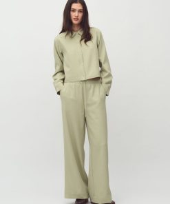 Loose trousers with elasticated waist- Material: 80% Modal, 20% Polyester- Elasticated- Side pockets- Straight legs- Soft quality- Color: Green Eyes