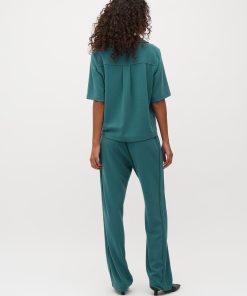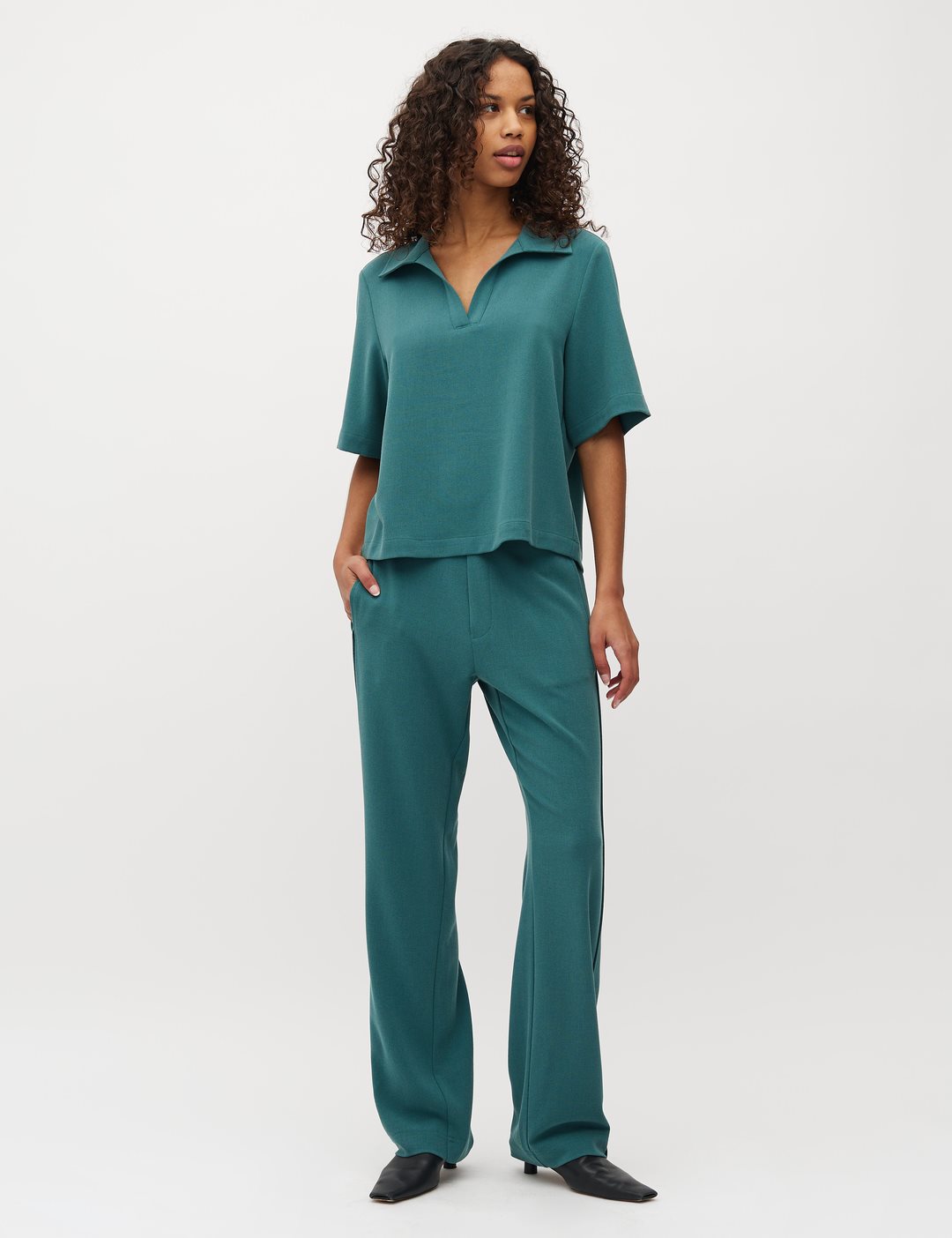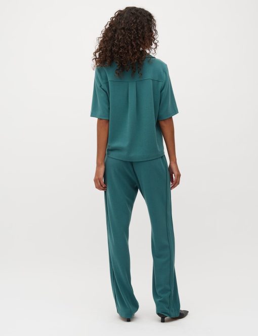 Wide leg trousers.- Material: 63% polyester, 33% viscose, 4% elastane- Wide legs- Elastic waist- Side pocketsThe model is 176 cm tall and is wearing a size S.