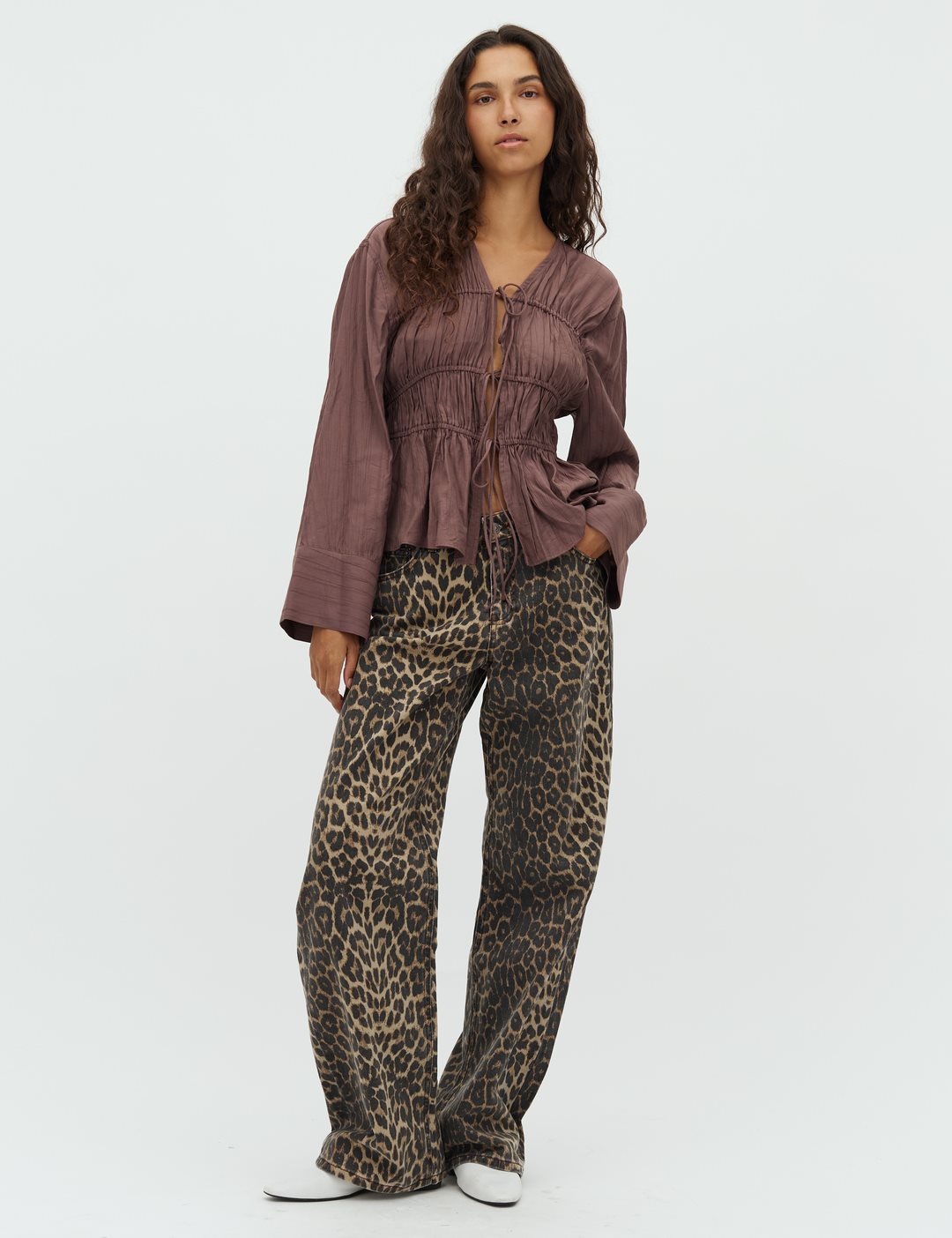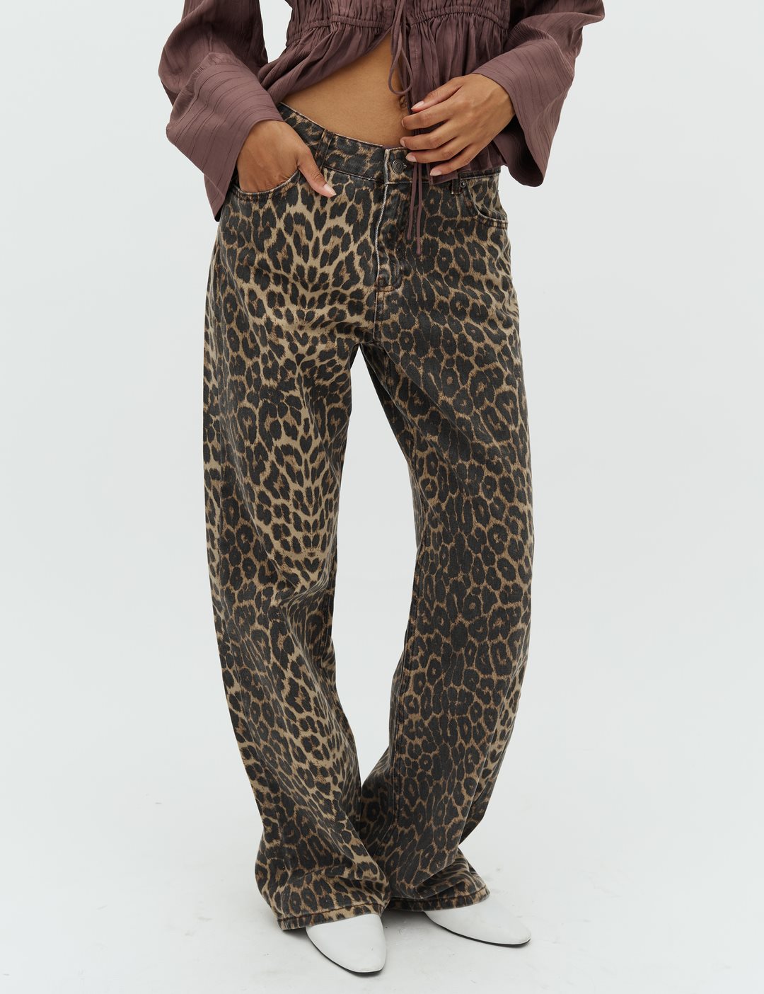 Low waist jeans in leopard denim.- Material: 100% Cotton- Low waist- Wide legs- Belt loops- Back pockets- Front pockets- Relaxed fitThe model's height is 176 cm and she is wearing a size S.