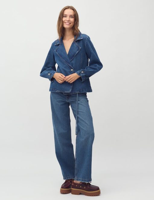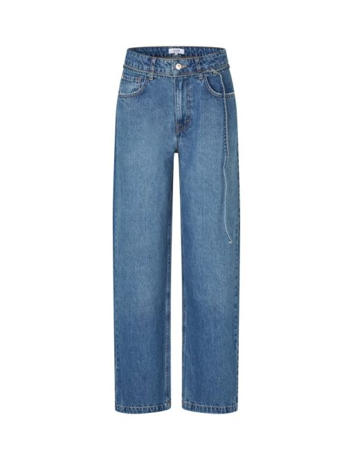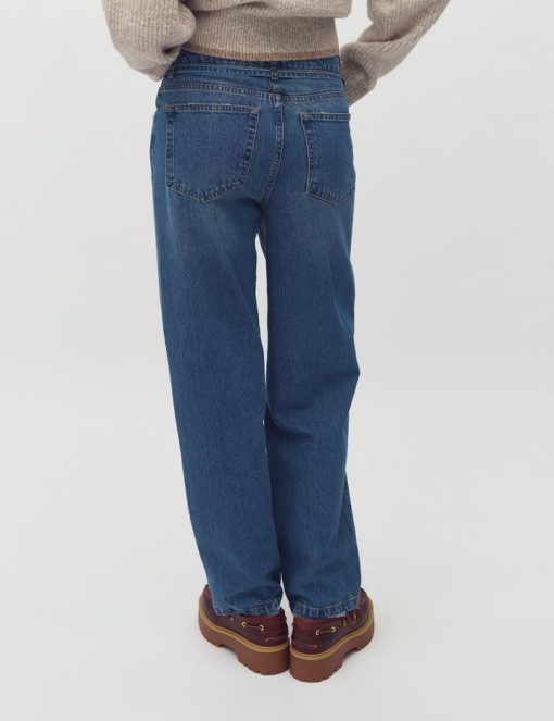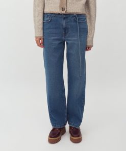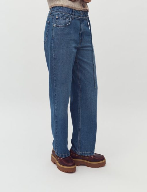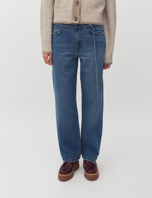 5-pocket jeans with straight legs.- Material: 100% Cotton- Straight legs- Mid-waist- 5-pocket- Removable denim belt- Belt loops- Relaxed fitThe model's height is 176 cm and she is wearing a size S.