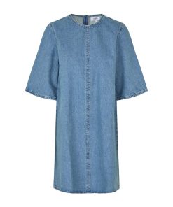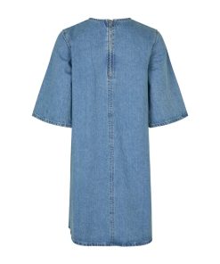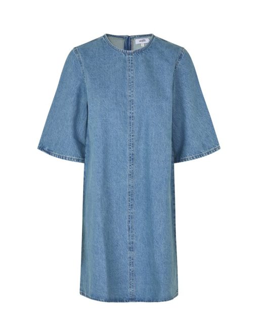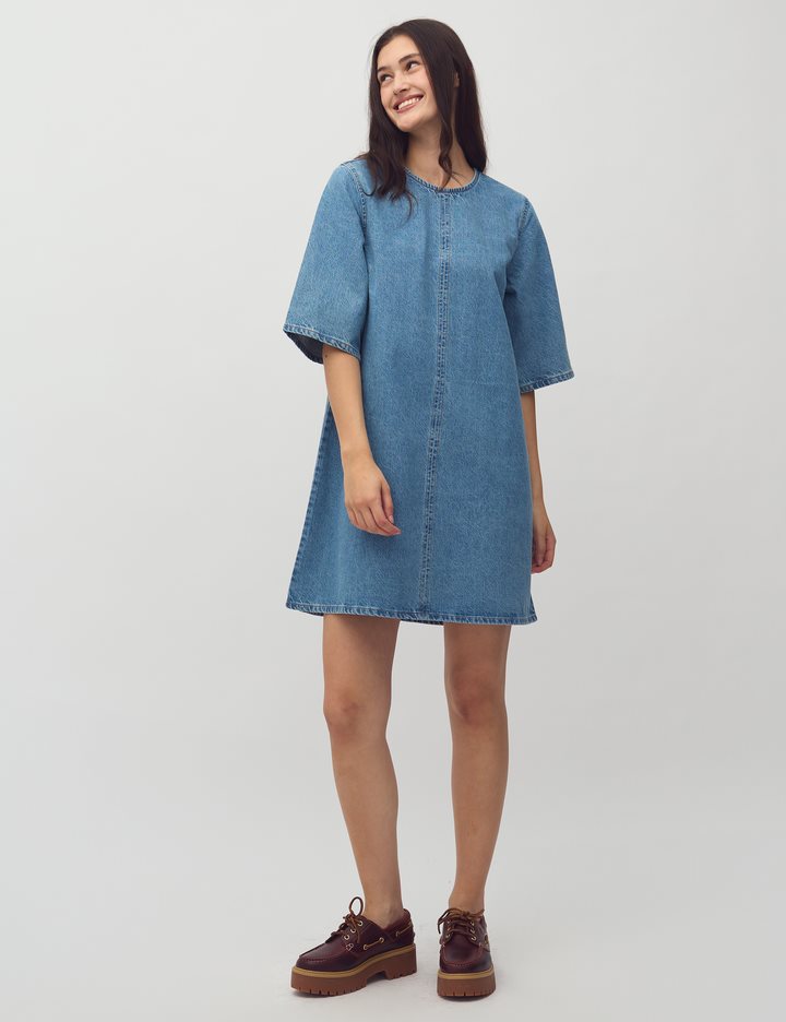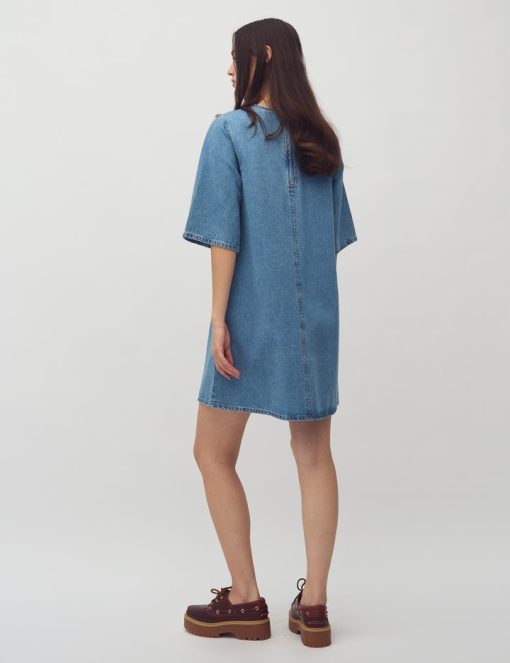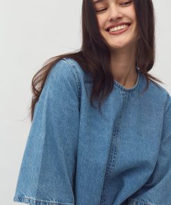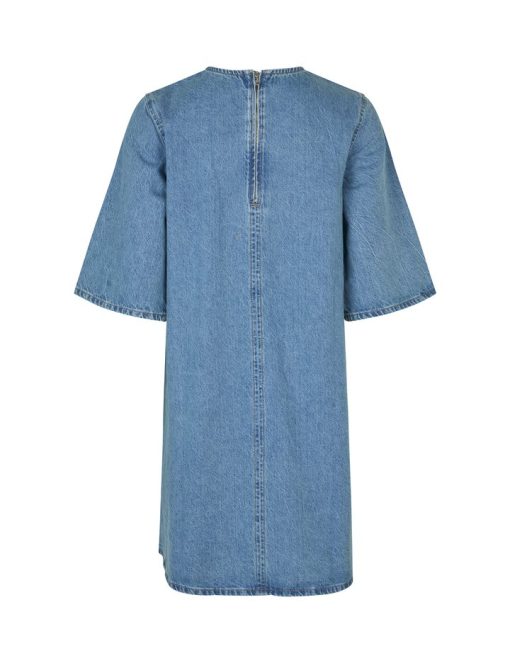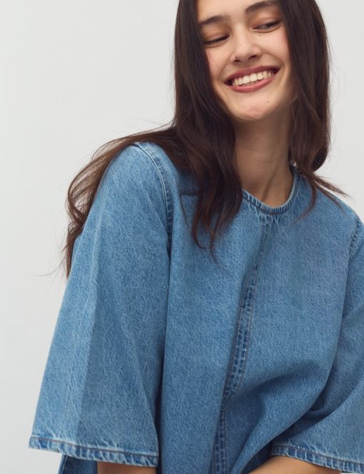 Denim dress with wide sleeves.- Material: 100% Cotton- Wide sleeves- Wide bottom- Round neckline- Zip closure at the backThe model is 178 cm tall and is wearing size S