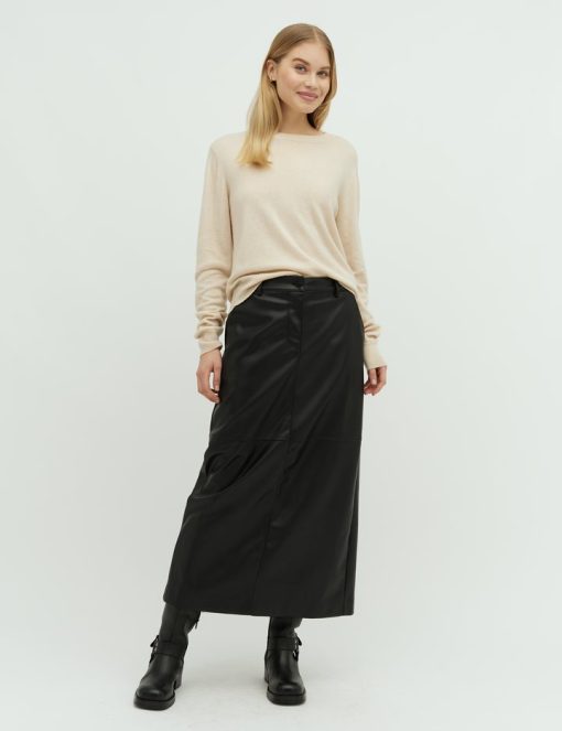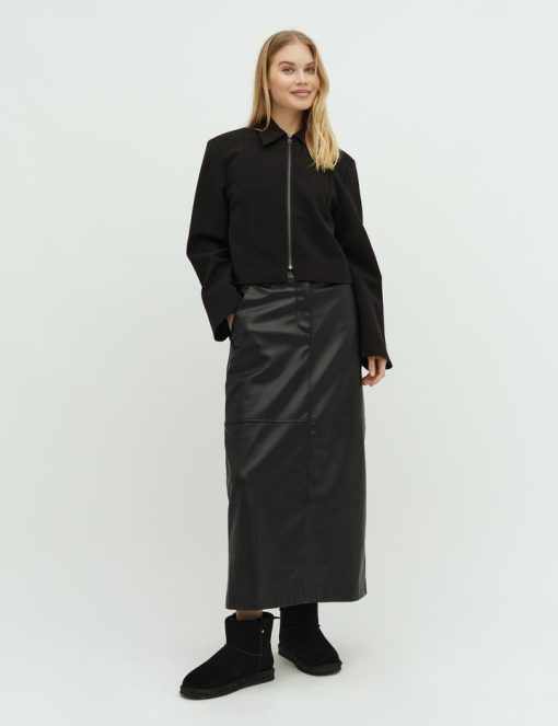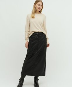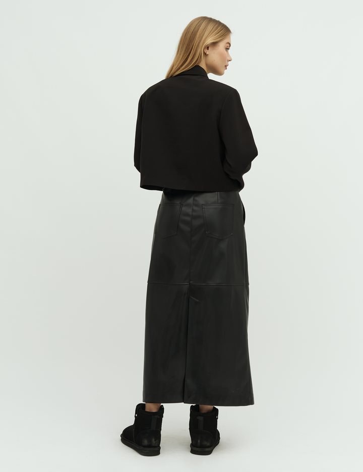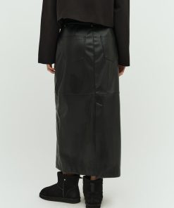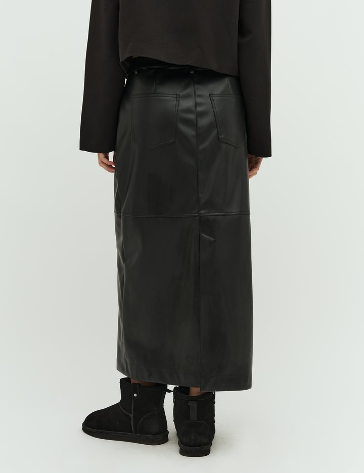 Maxi-skirt in alt leather. – Material: Lining 100% Polyester, Outer 100% Polyurethane- Maxi length- Alt Leather- Closes with button and zipper- Side pockets- Color: BlackThe model is 178 cm tall and wears size S