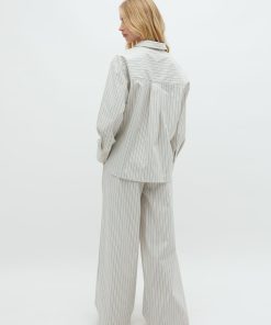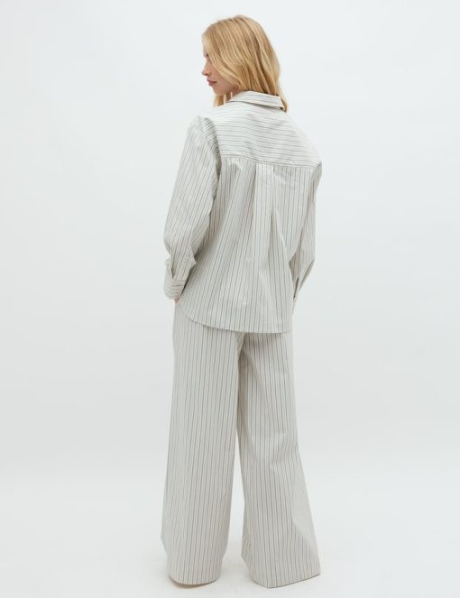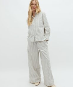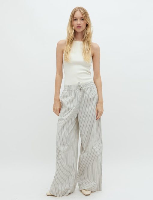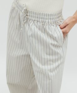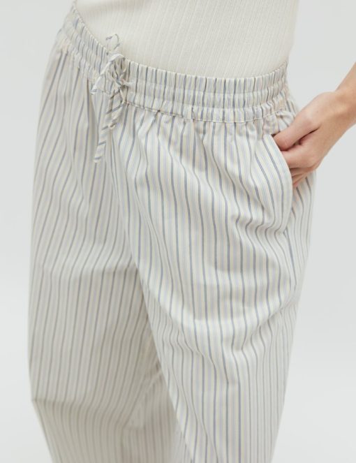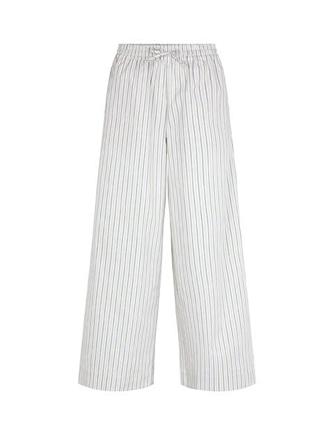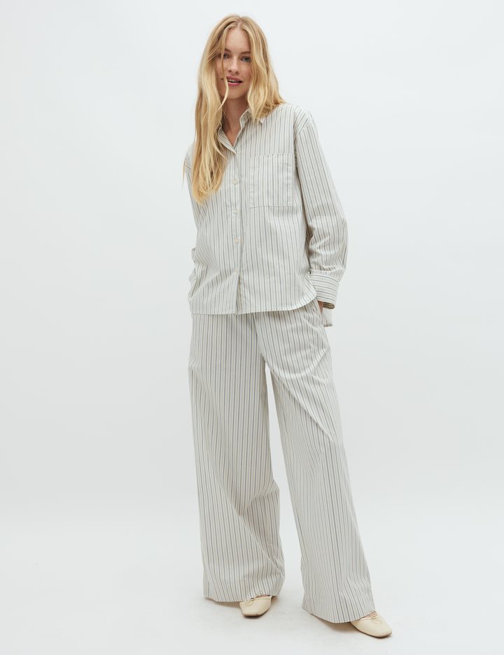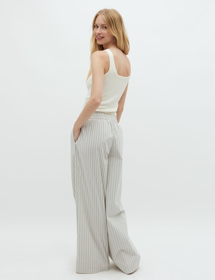 Striped trousers with wide legs- Material: 69% Cotton, 28% Nylon, 3% Elastane- Wide legs- Drawstring at the waist- Poplin quality- Side pockets- Color: Blue Ramla StripeThe model is 174 cm tall and wears size S