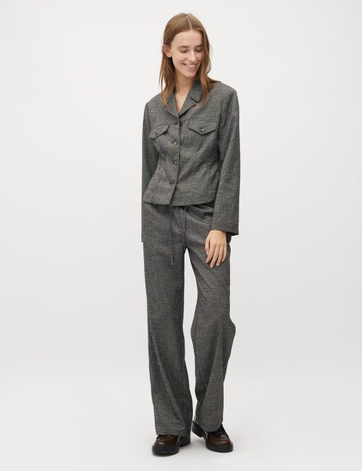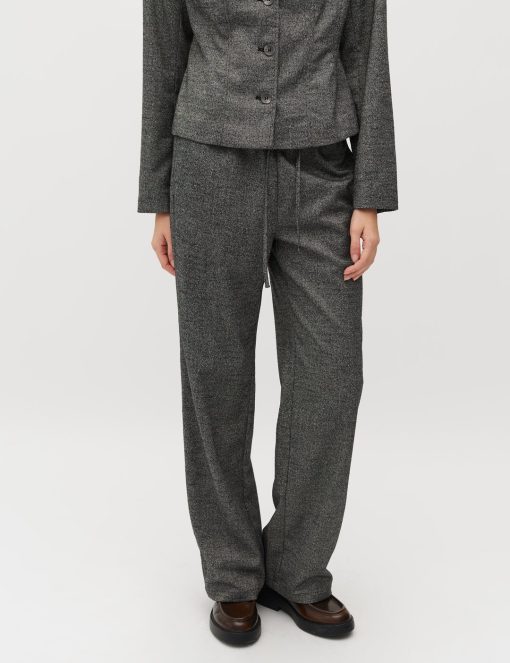 Loose trousers with drawstring at the waist.- Material: 50% Polyester, 48% Viscose, 2% Elastane- Drawstring at the waist- Wide leg- Loose fit- Textured fabricThe model's height is 176 cm and she is wearing size S.