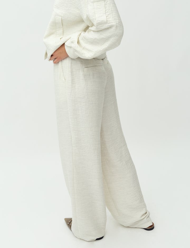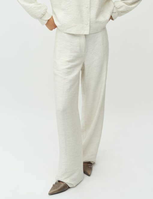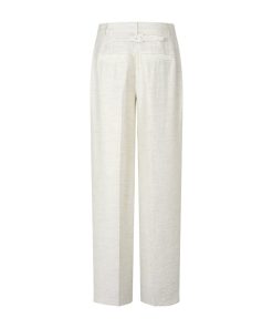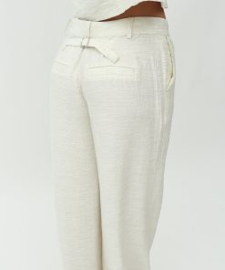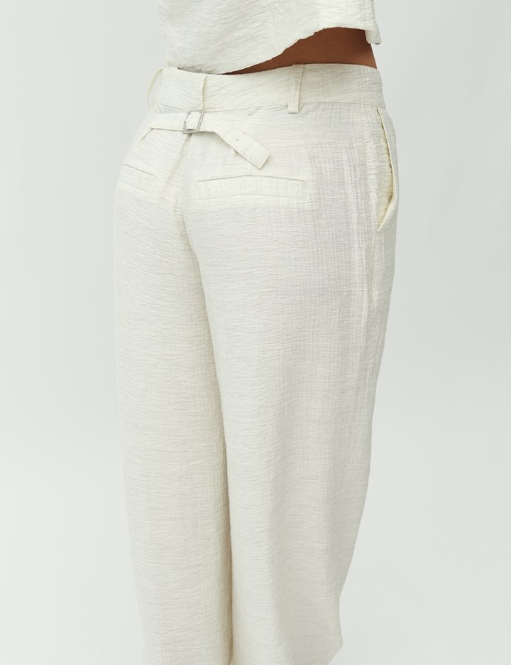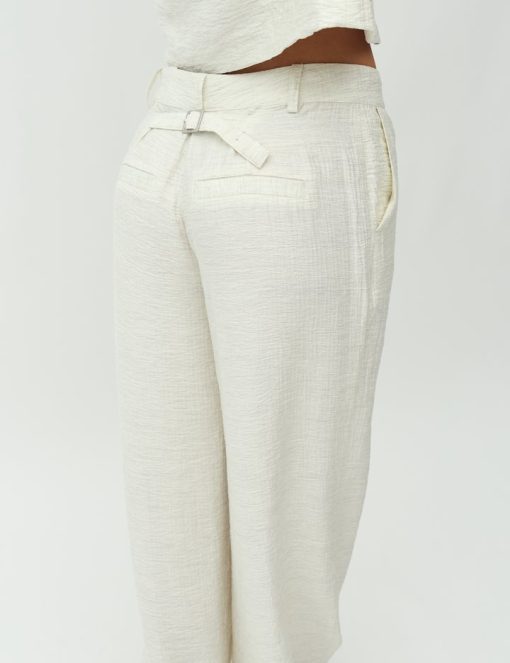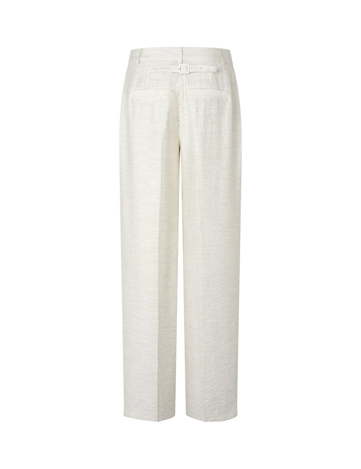 Straight leg trousers with adjustable buckle.- Material: 70% Viscose, 15% Polyester, 15% Cotton- Side pockets- Straight leg- Mid waist- Press pleats- Adjustable buckle at the backThe model's height is 176 cm and she is wearing size S.