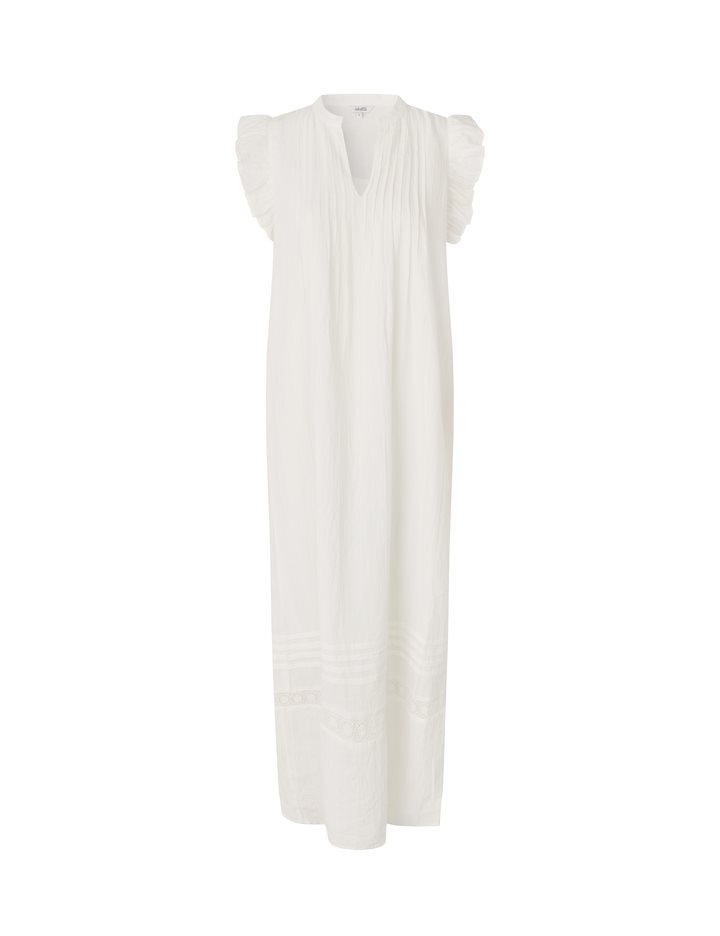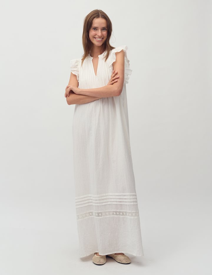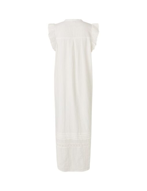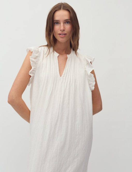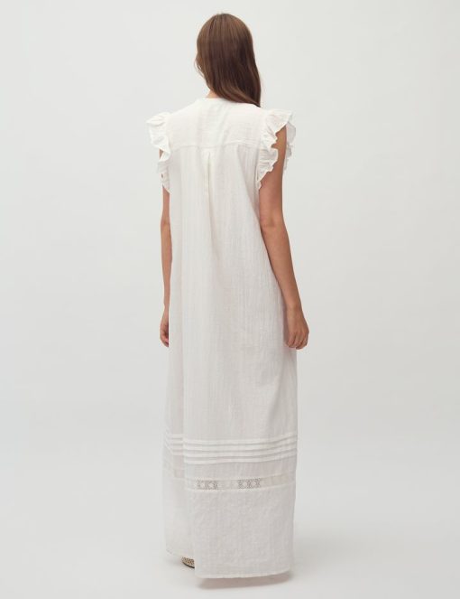 Maxi dress with ruffle details at the shoulder- Material: 100% Cotton- Sleeveless- Round neck with v-neck- Relaxed fit- Maxi lengthThe model is 176 cm tall and is wearing a size S.