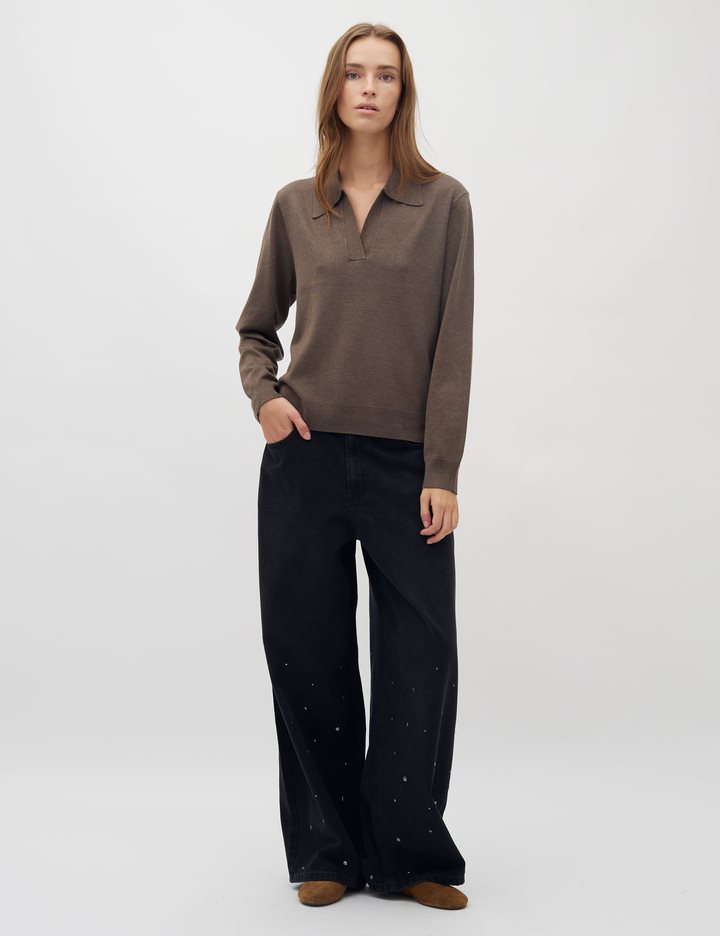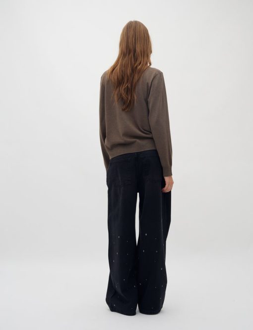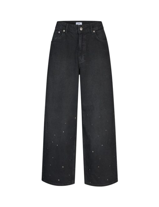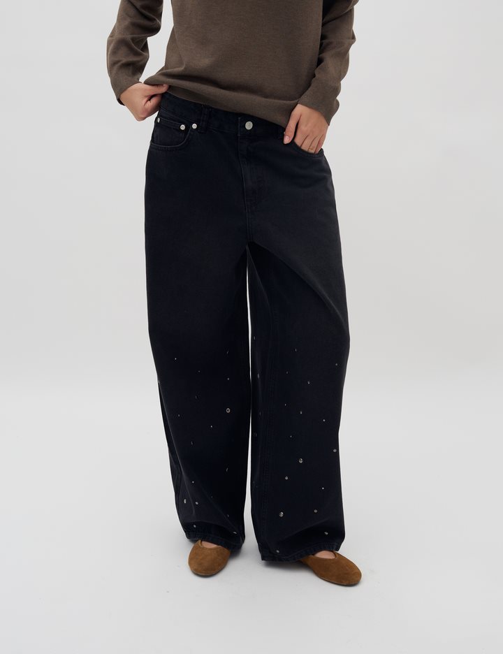 Jeans with wide legs and studs.- Material: 100% Cotton- Wide legs- Studs on pant legs- 5-pocket- Closes with zip and button
