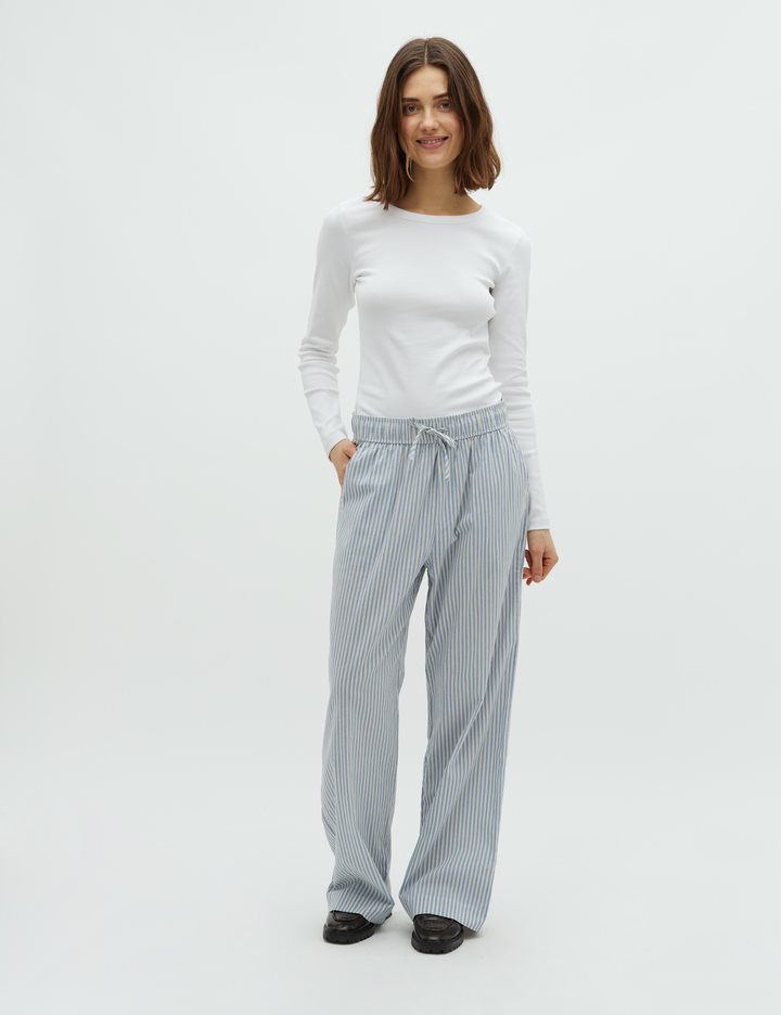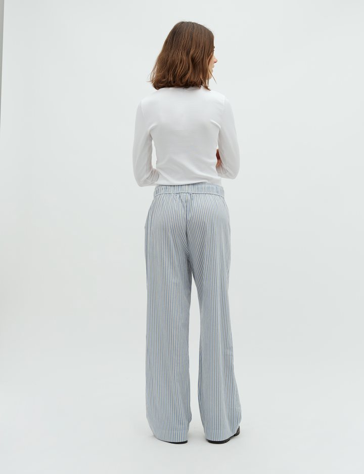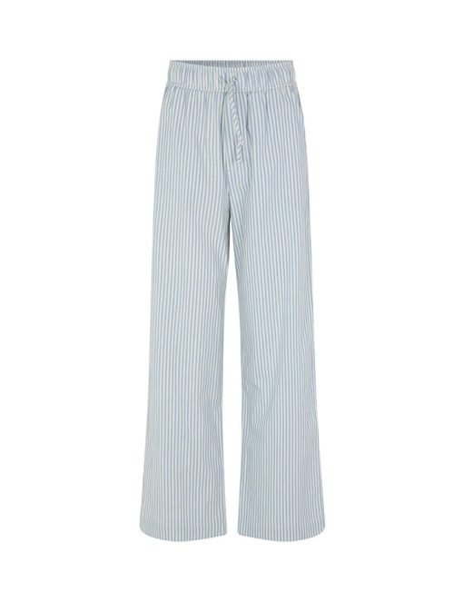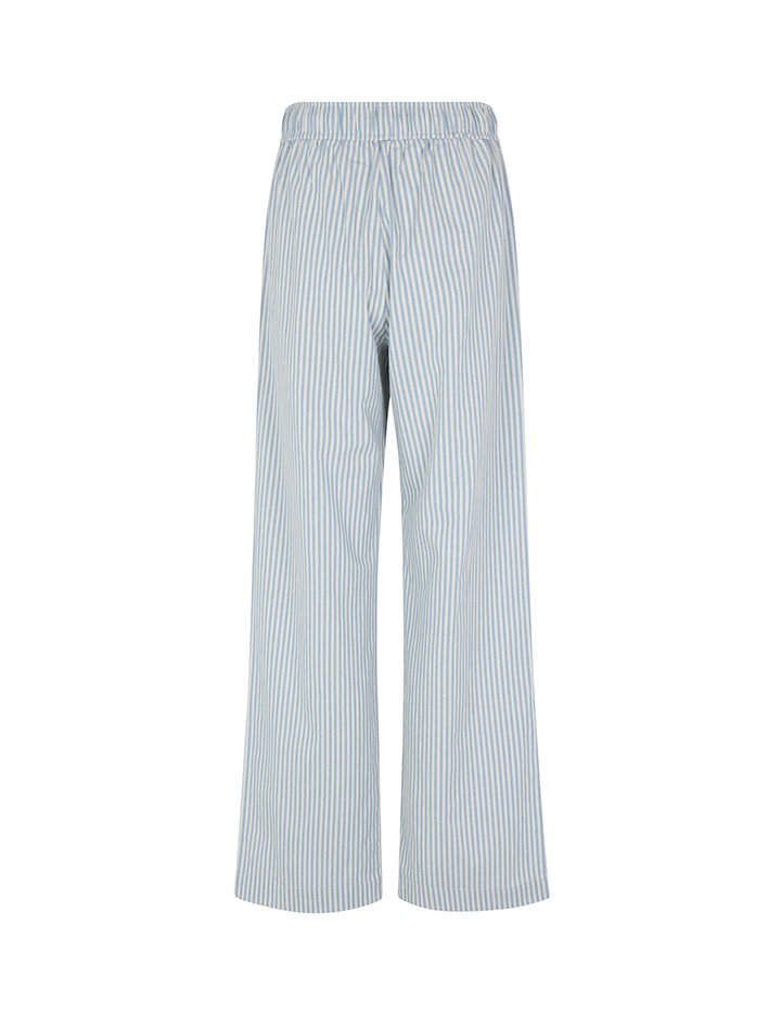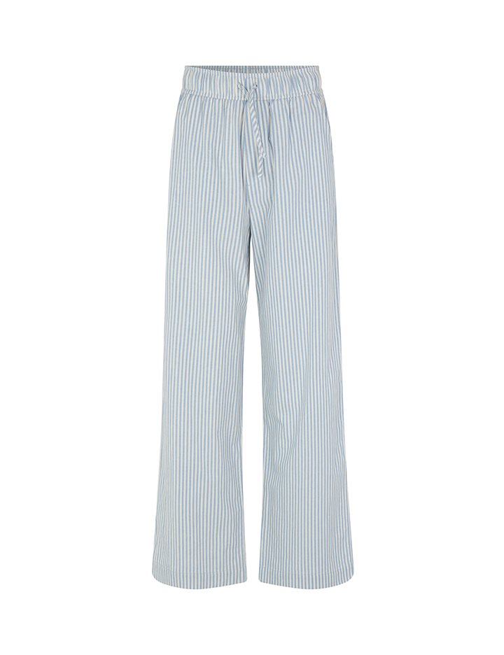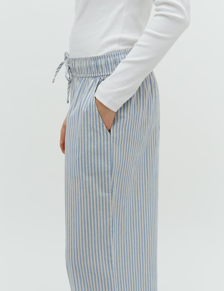 Trousers with pockets.- Material: 70% Cotton, 30% Linen- Full length- Tie waist- Side pockets- Loose fit- Wide legs- Color: Blue Sugar Stripe