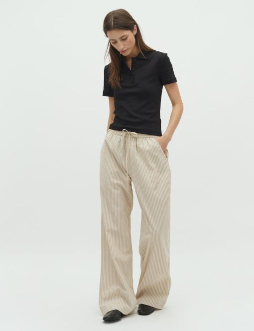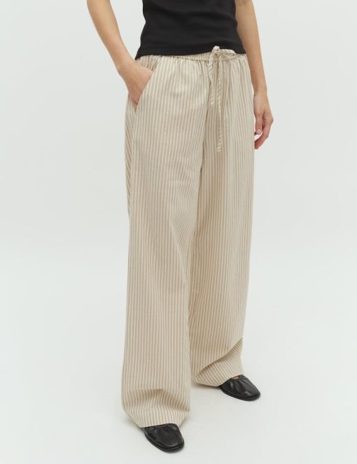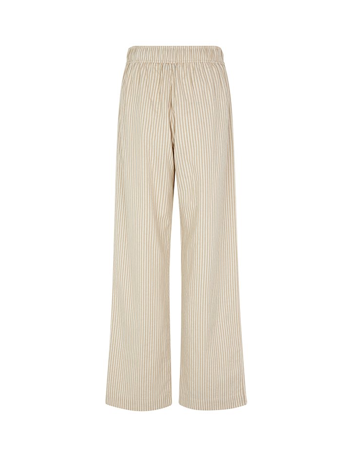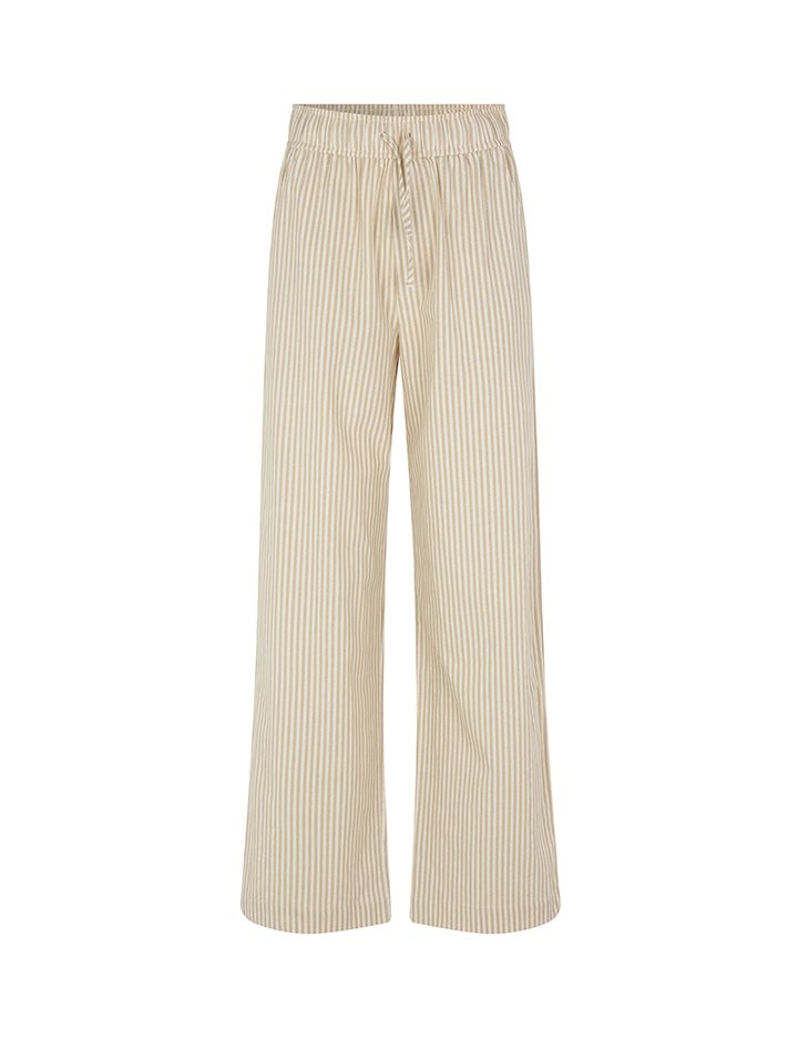 Trousers with pockets.- Material: 70% Cotton, 30% Linen- Full length- Tie waist- Side pockets- Loose fit- Wide legs- Color: Sugar Sand Stripe
