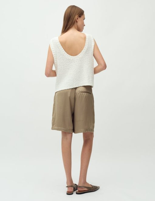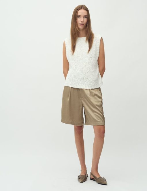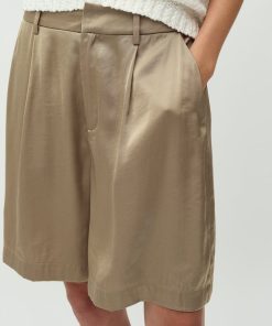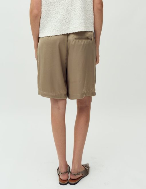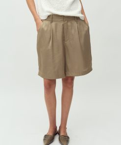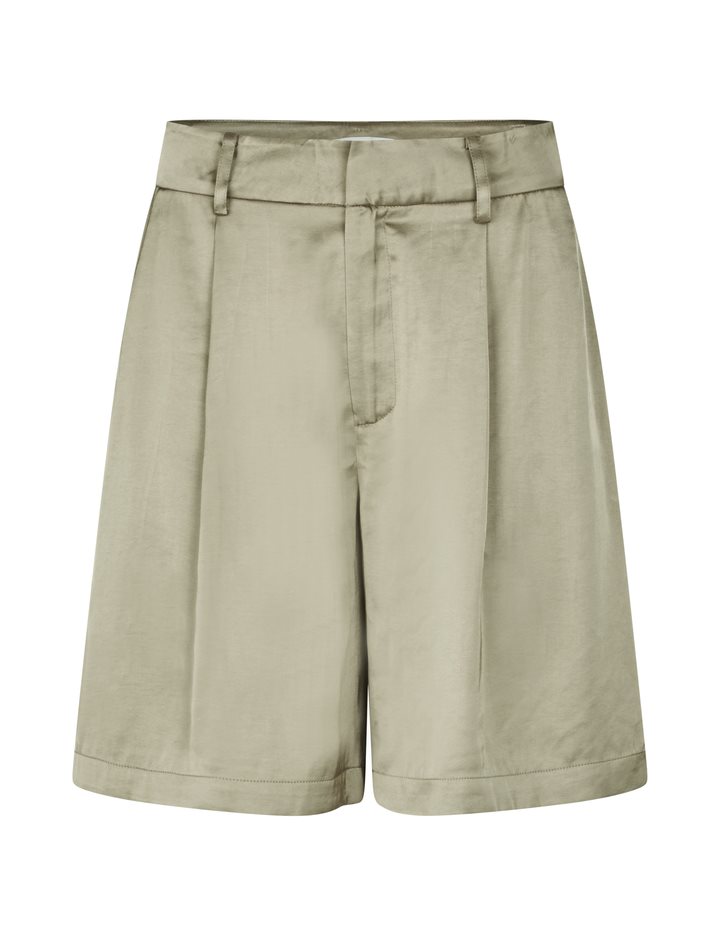 Suit shorts with wide legs.- Material: 54% Polyester, 46% Viscose- Wide legs- Light a-shape- Belt straps- Hook and zip closure- Side pockets- Piped back pocketThe model's height is 176 cm and she is wearing a size S.