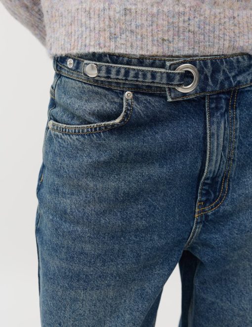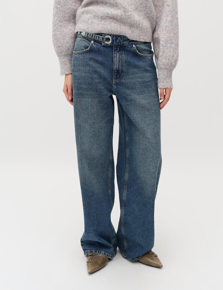 Jeans with adjustable waist.- Material: 100% Cotton- Wide legs- Closes with zipper and button- Adjustable waist- Full lengthThe model's height is 176 cm and she is wearing size S.