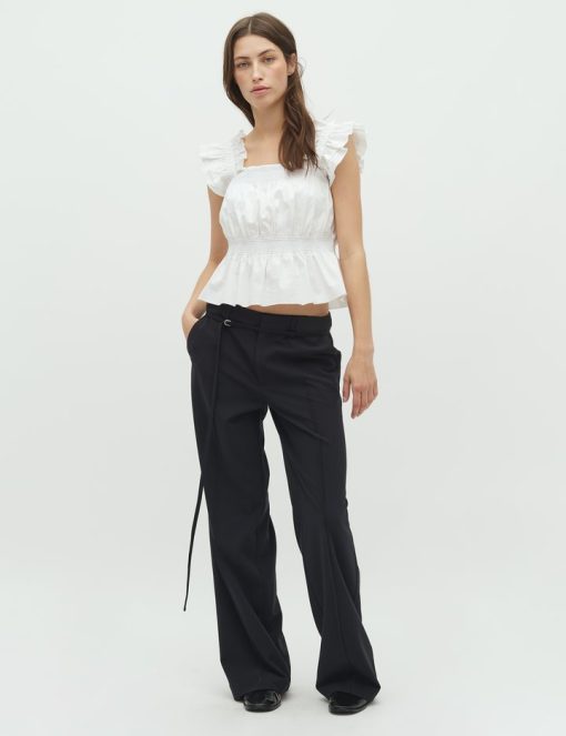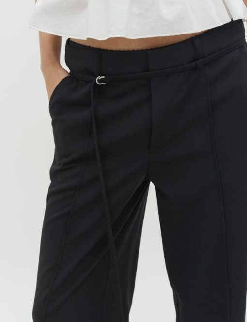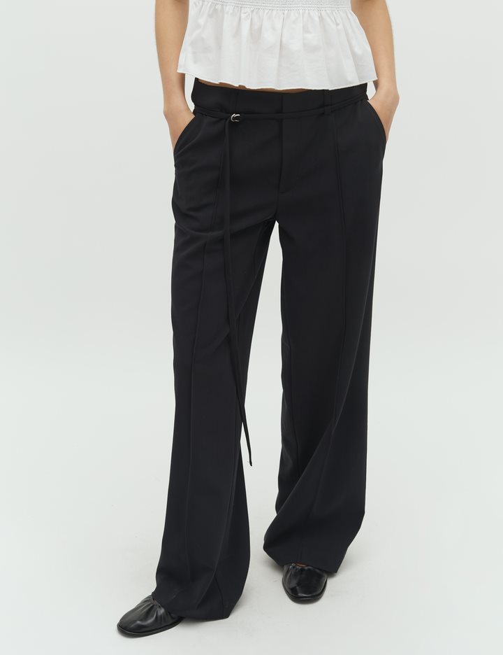 Pants with a narrow belt.- Material: 63% Recycled Polyester, 33% Viscose, 4% Elastane- Small matching belt- Back pockets- Loose fit- Side pocketsThe model is 176 cm tall and is wearing a size S.