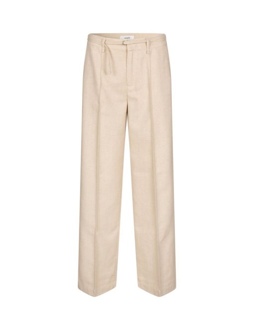 Trousers with removable belt.- Material: 80% Polyester, 20% Wool- Small matching belt- Back pockets- Loose fit- Side pockets- Pintuck- Color: Oat Melange