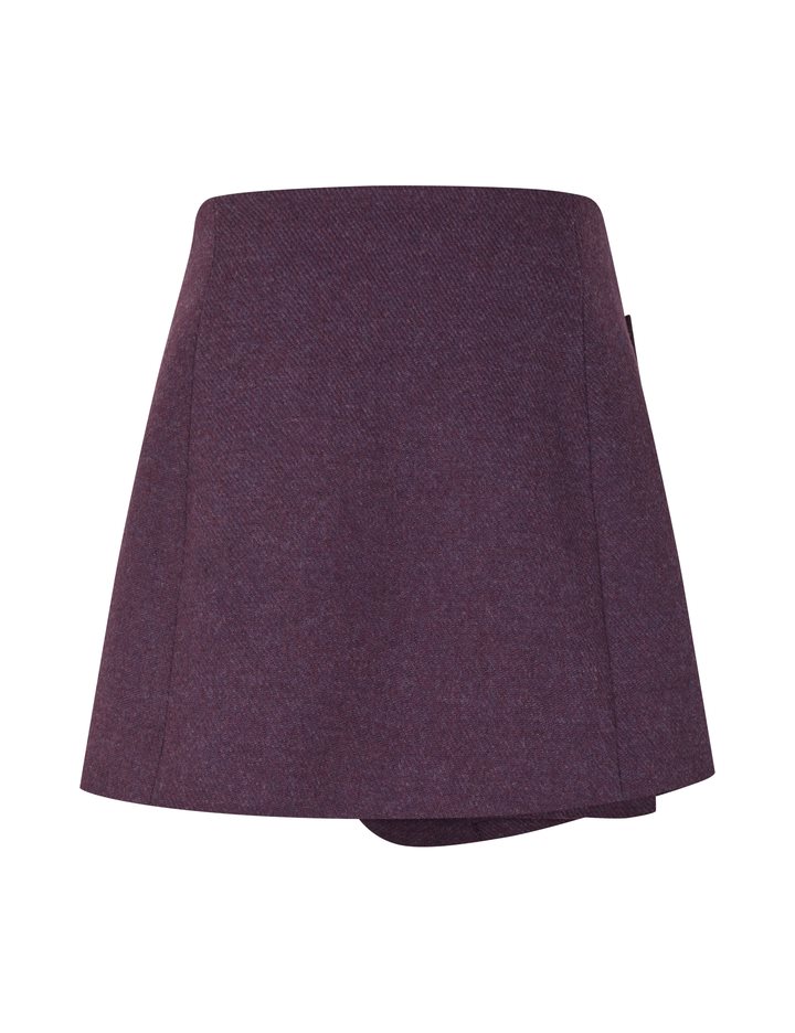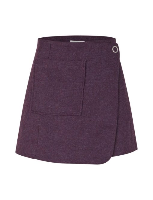 Short skirt in heavy herringbone.- Material: 95% Polyester, 5% Wool- Closes diagonally with silver-colored eyelet button- Short length- Pocket on the side- Heavy quality