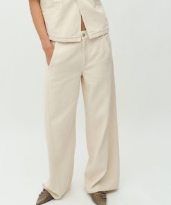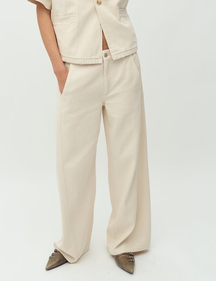 Wide leg trousers with side pockets.- Material: 100% Cotton- Wide legs- Side pockets- Soft quality- Back pocketsThe model is 176 cm tall and is wearing size S.