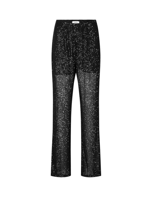 Jersey mesh pant with sequins all-over.- Material: 95% Polyester, 5% Elastane- Straight legs- Loose fit- Sequins all-over- See-through, however with "inner shorts".Color: Black