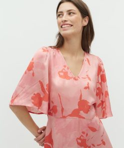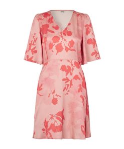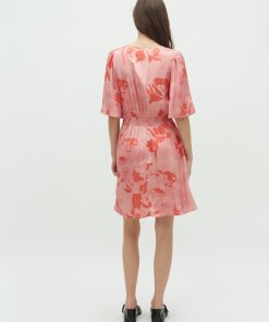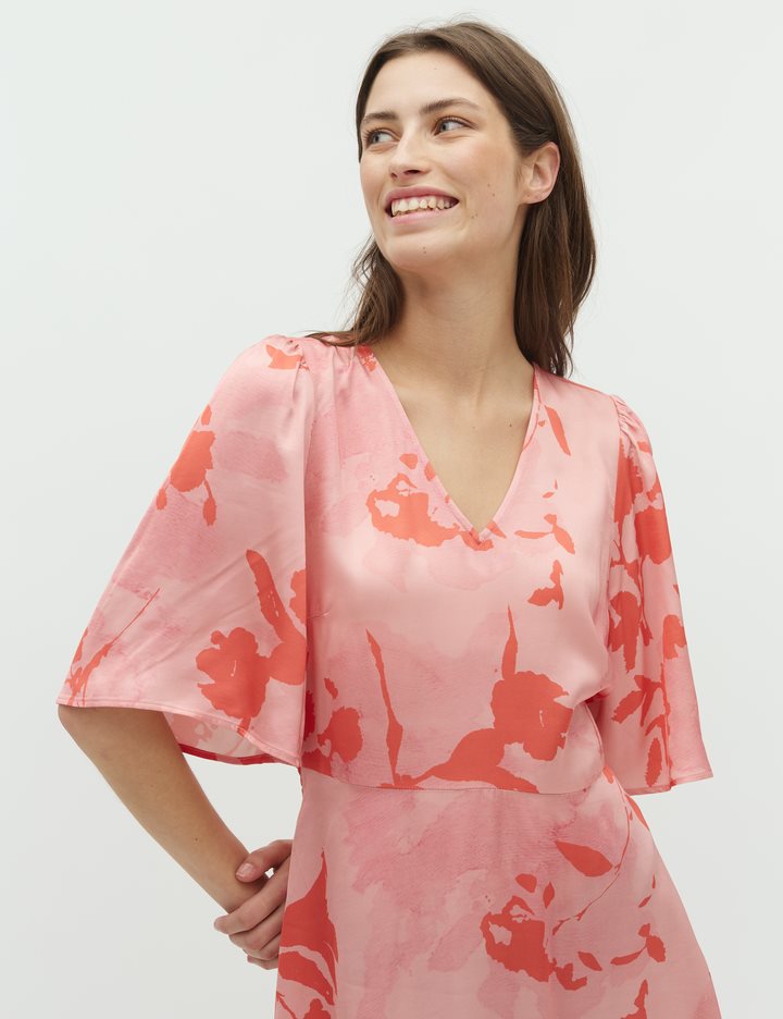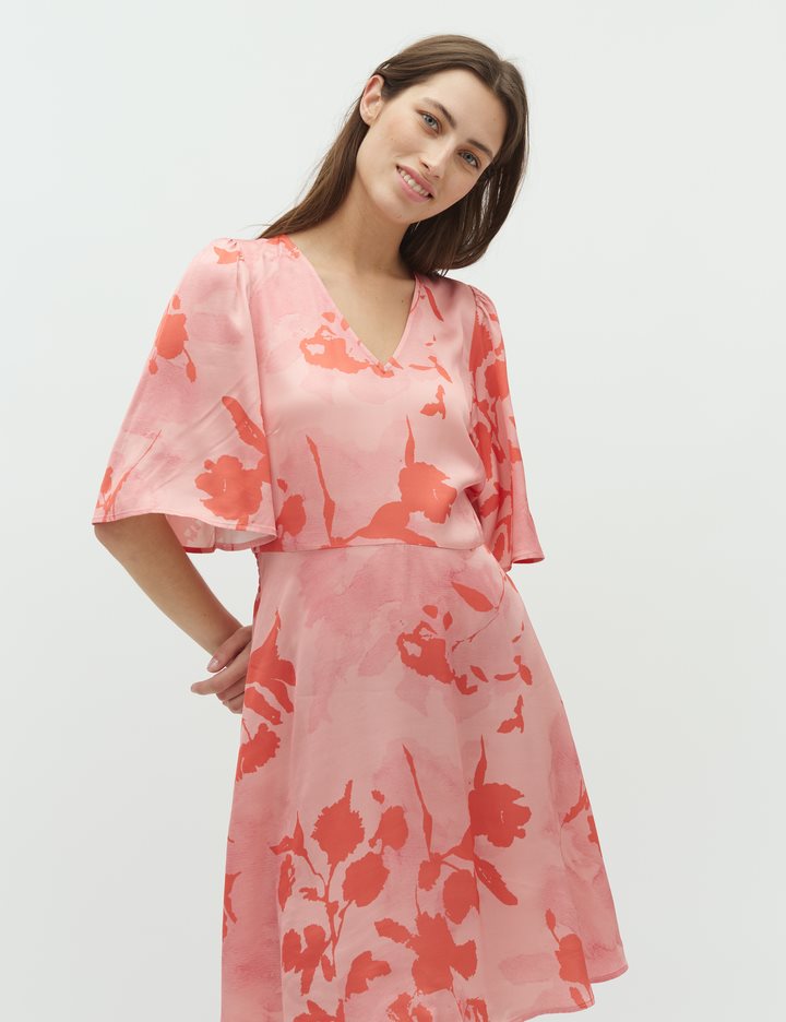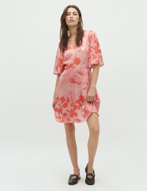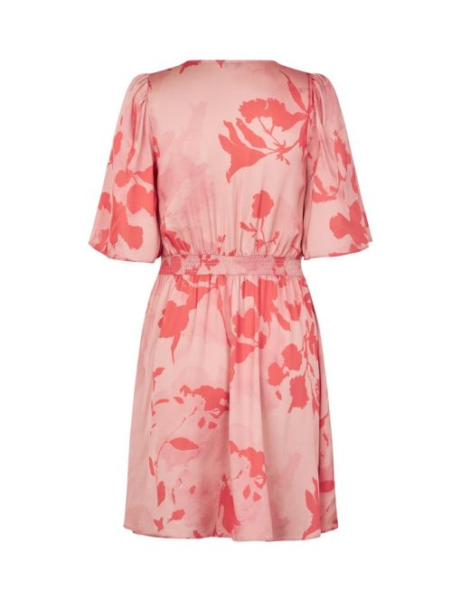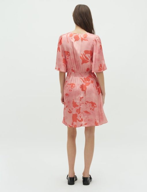 Printed short dress.- Material: 50% Viscose, 50% Ecovero Viscose- Big sleeves- V-neck- Light material- Relaxed fit- Smock at the waist at the backThe model's height is 176 cm and she is wearing a size S.