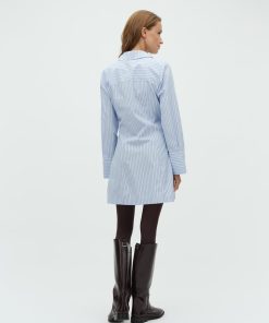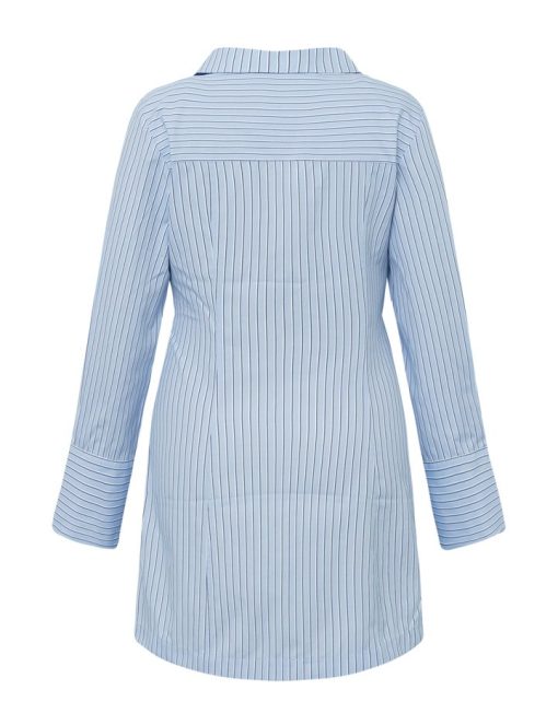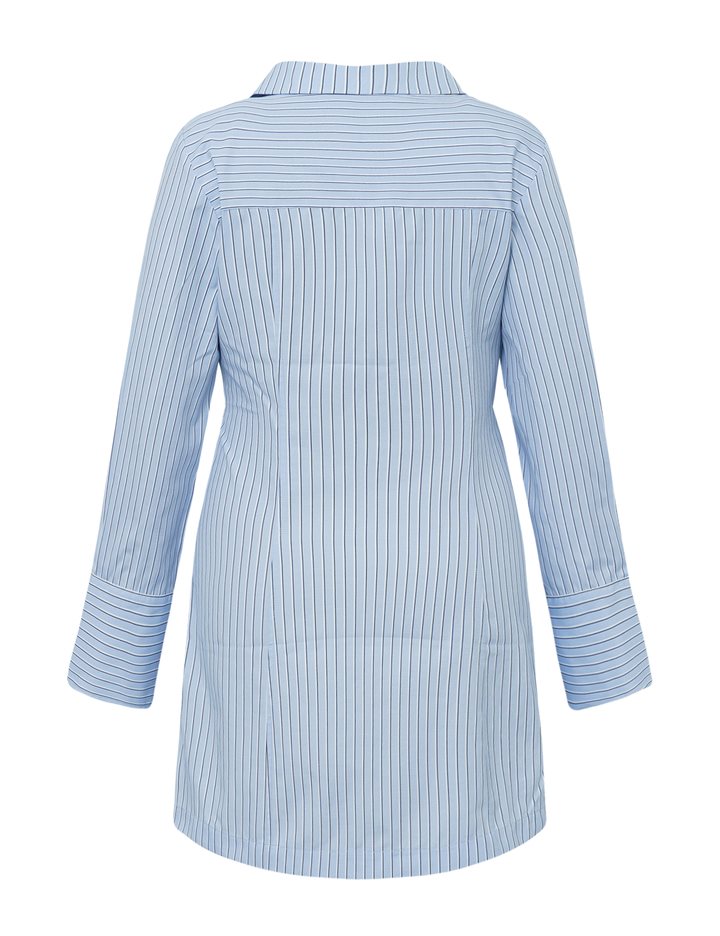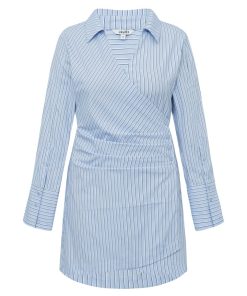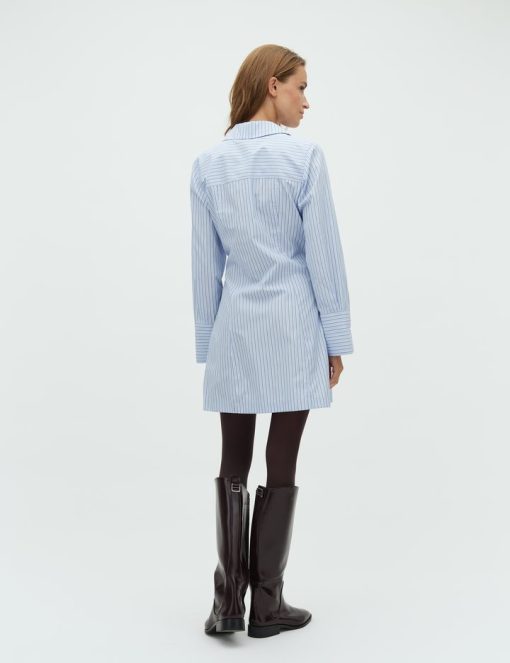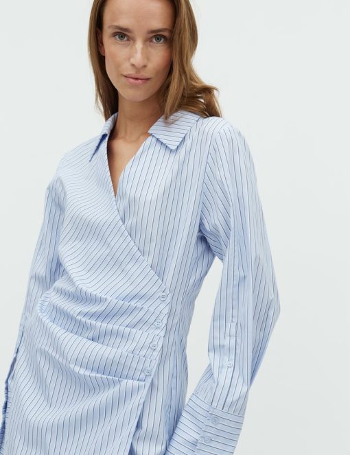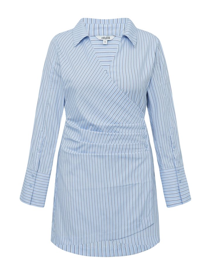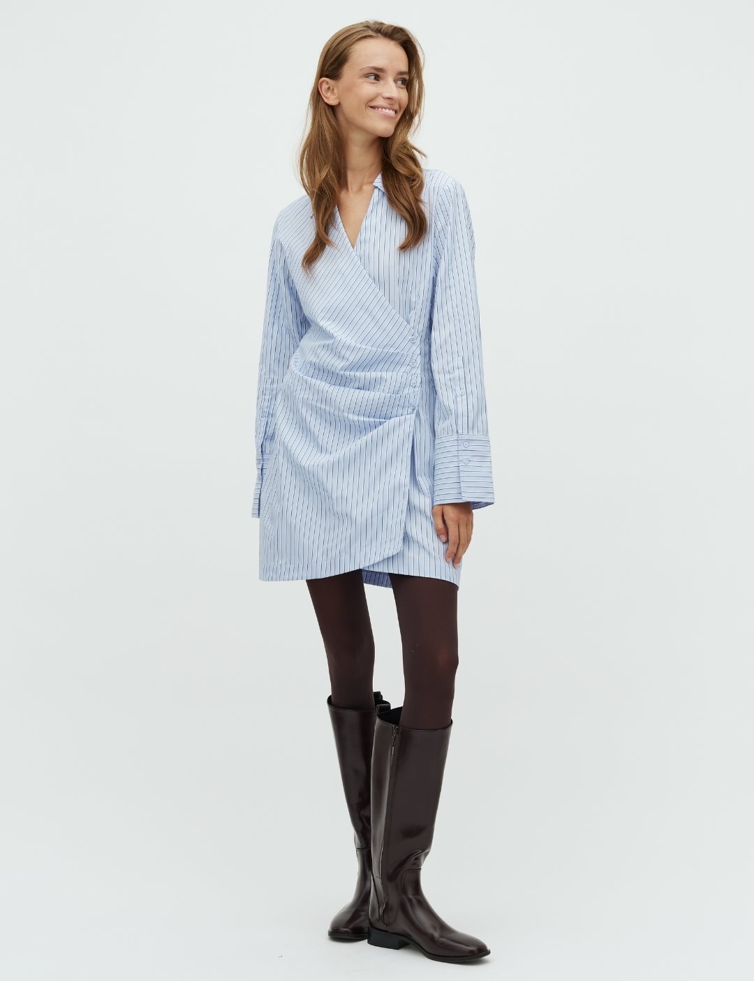 Dress with wide sleeves and wrap effect.- Material: 65% Polyester, 35% Cotton- Shirt collar- Wrap effect with buttons on the side- Wide sleeves- StripedThe model's height is 176 cm and she is wearing size S.