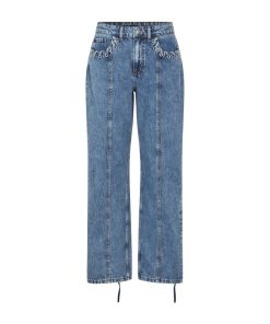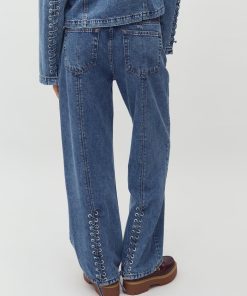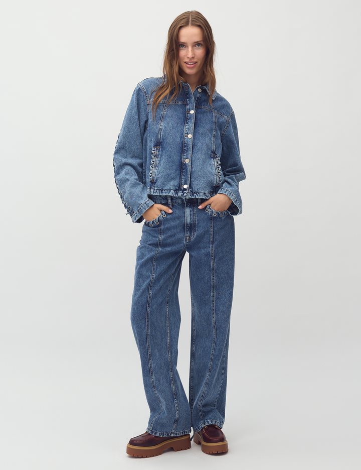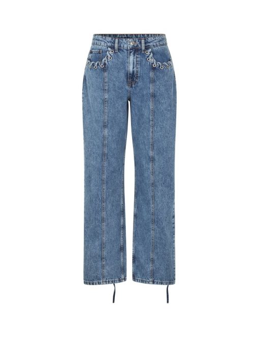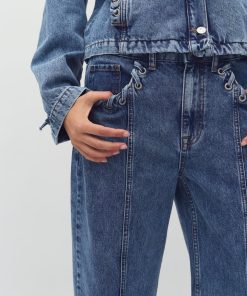 Jeans with lace details.- Materials: 100% cotton- Straight legs- Mid waist- Lace details at back and at pockets- 5 pockets- Button and zip fly- Loose fitThe height of the model is 176 cm and she is wearing a size S.
