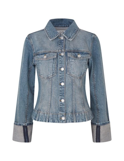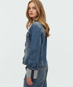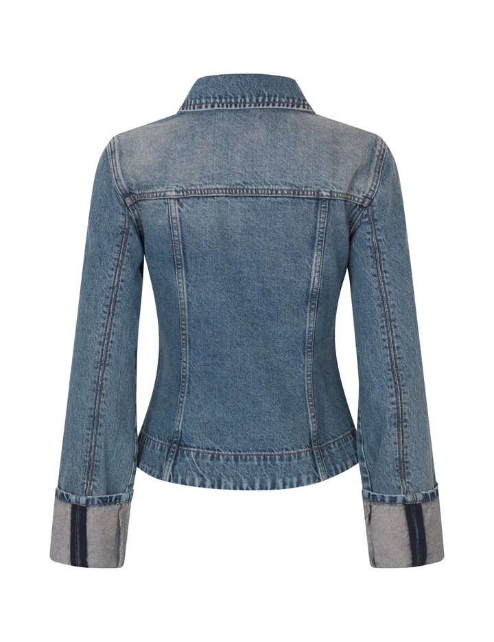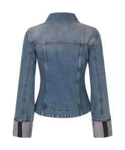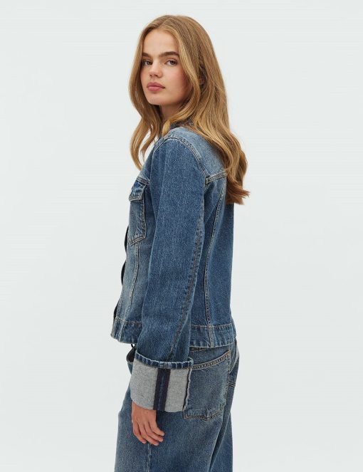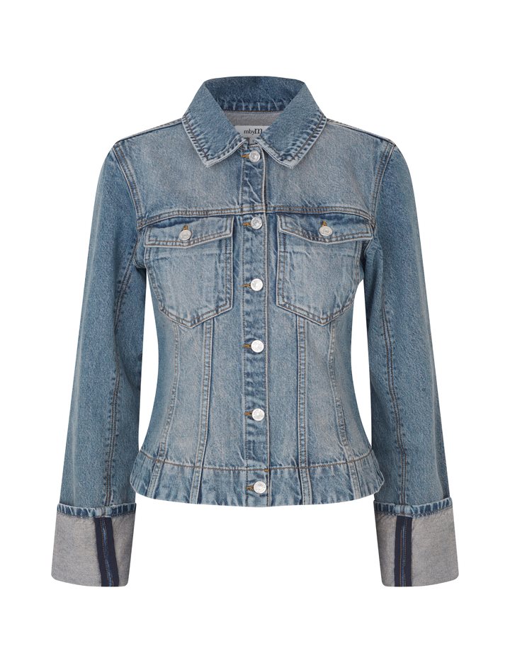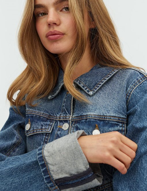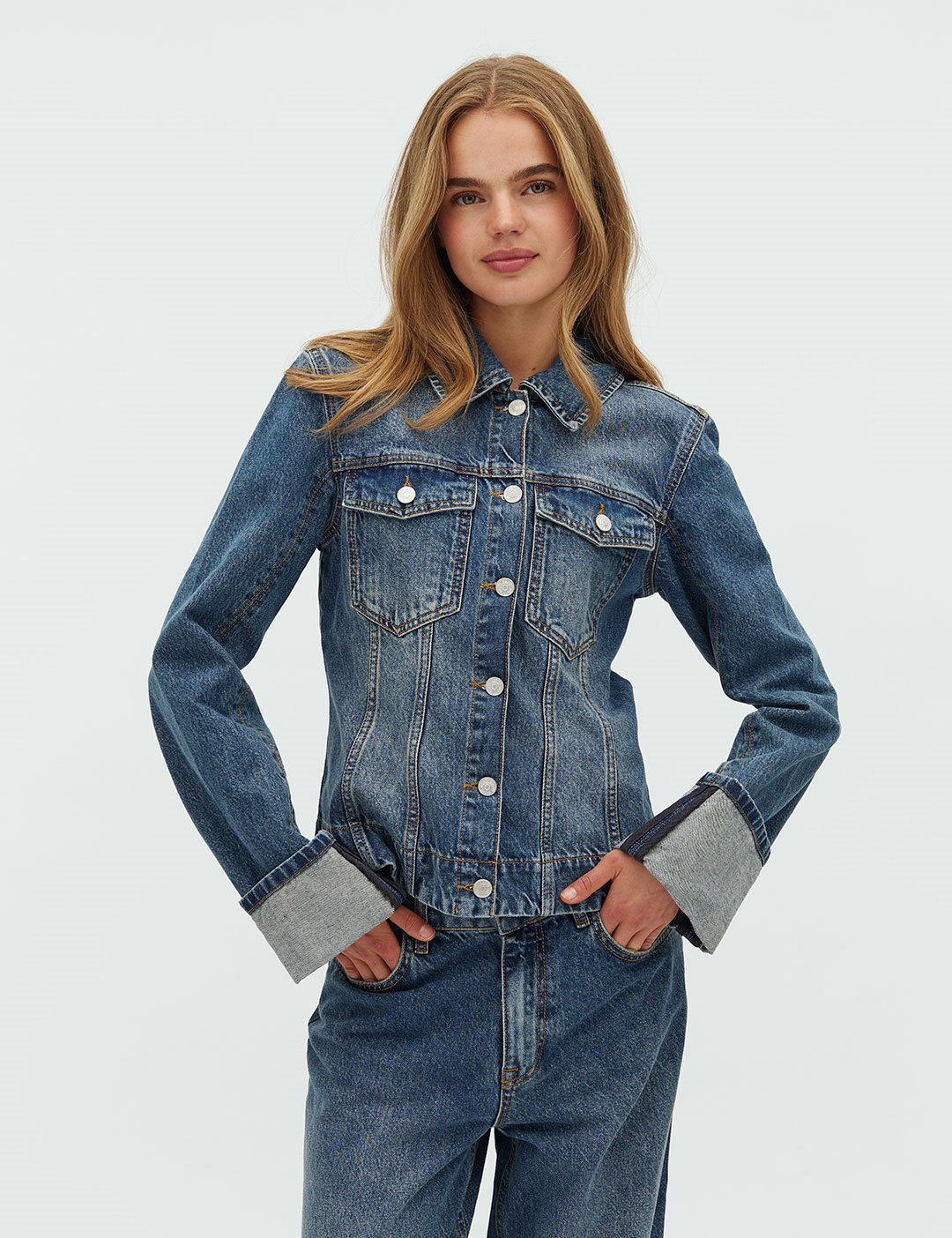 Denim shirt jacket.- Material: 100% Cotton- Long sleeves with turn-ups- Button closure- Shirt collar- Tight fit- Chest pocketsThe model's height is 176 cm and she is wearing size S.