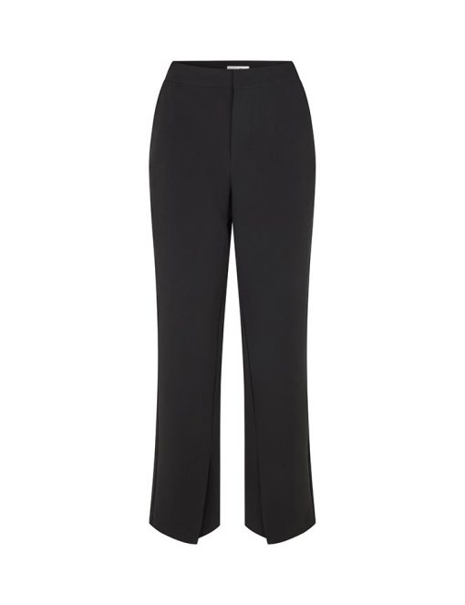 Woven pant with pockets and invisble upseam.- Material: 72% Polyester, 25% Viscose, 3% Elasthane- Flared legs- Splits to hem – Close-fitting, regular on the waist