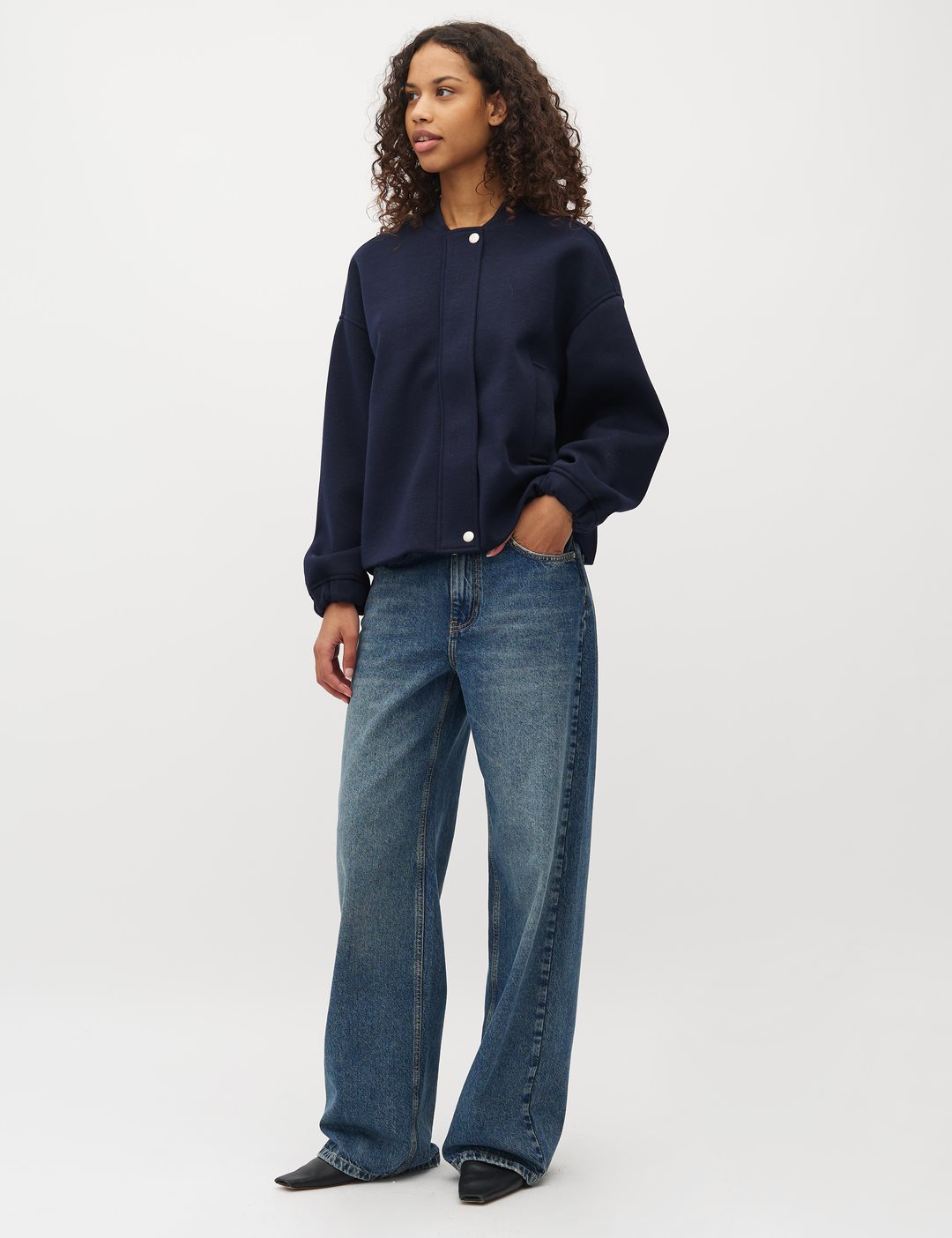 Bomber jacket in soft quality.- Material: 85% Polyester, 15% Viscose- Bomber jacket- Soft quality- Slanted side pockets- Closes with zipper and buttons- Relaxed fitThe model's height is 176 cm and she is wearing size S.