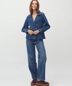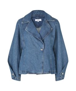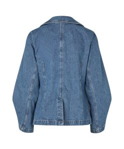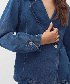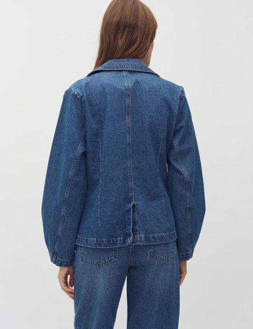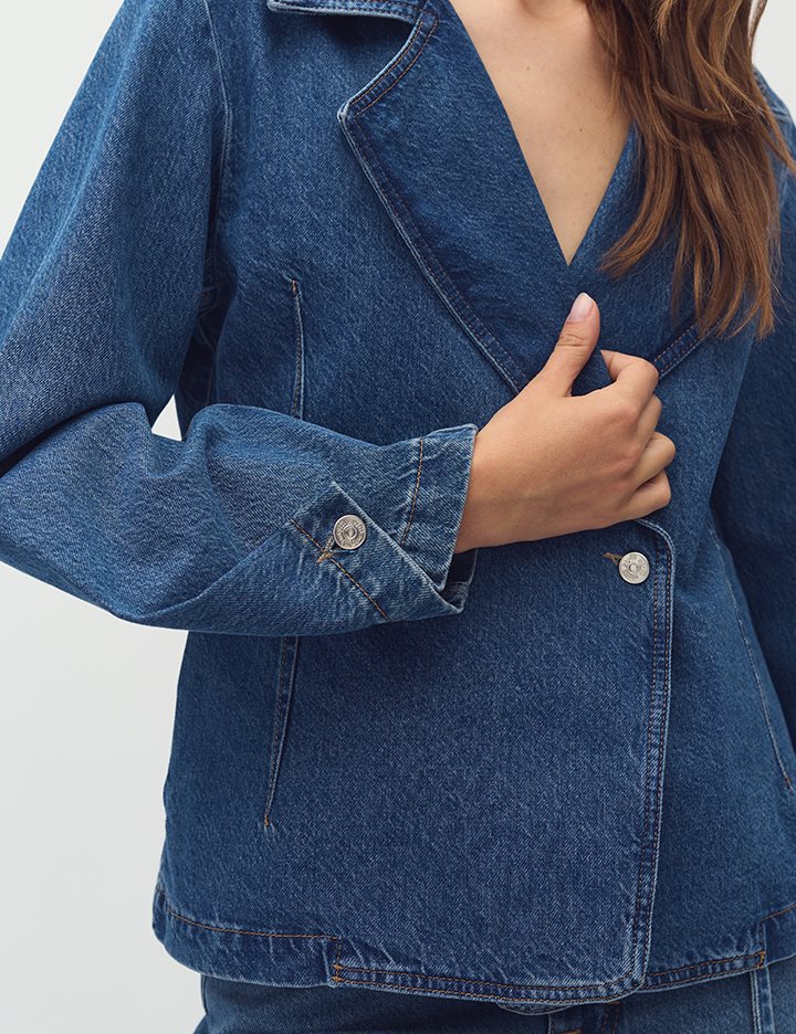 Denim blazer/jacket with button details.- Material: 100% Cotton- Long sleeves with button details at the cuffs- Single button closure- Collar- Back slit- Relaxed fit with a slight adjusted waistThe model's height is 174 cm and she is wearing a size S.