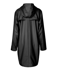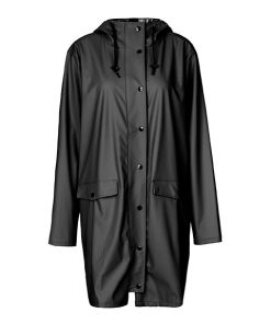 Fabiola Festival is a raincoat in a modern design from mbyM. – Material: 50% Polyester, 50% Polyurethane- Oversized fit- Long sleeves- Hood with constrict- Large pockets with buttons in the front- Closes with buttons in the front- Midi-lenght- The jacket has air holes- Water resistant – This variant is blackStay dry wearing the mbyM raincoat with a water column of 3000 mm.