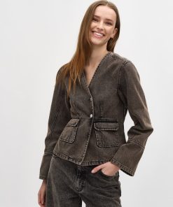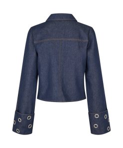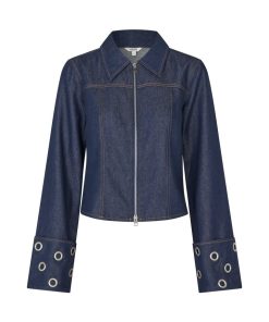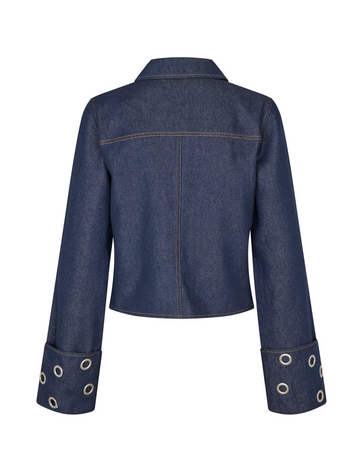 Denim jacket with eyelets details- Material: 100% Cotton- Two-way zip- Eyelets details on the sleeves- Collar- Color: Raw Blue