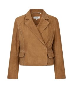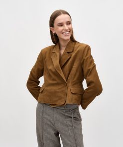 Short blazer in suede- Material: 100% Goat Suede- Closes on the side with a button- Two pockets on the front- Long sleeves- Goat suede- Colour: Cognac BrownThe model is 176 cm tall and wears size S