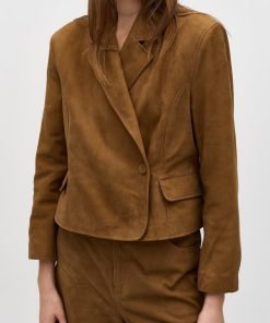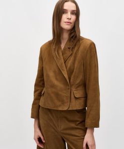 Short blazer in suede- Material: 100% Goat Suede- Closes on the side with a button- Two pockets on the front- Long sleeves- Goat suede- Colour: Cognac BrownThe model is 176 cm tall and wears size S