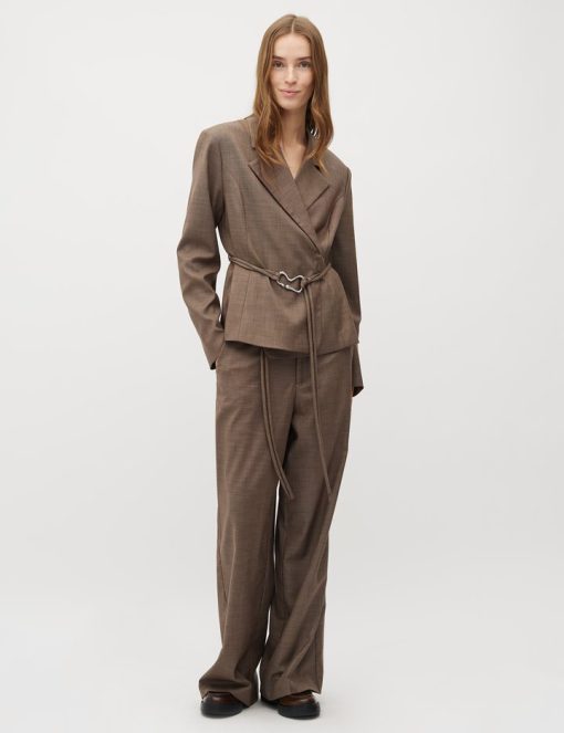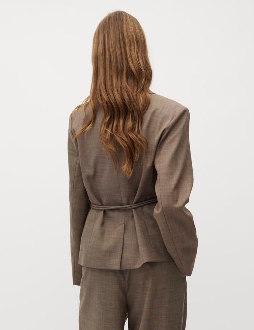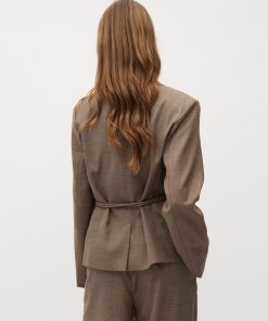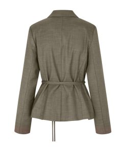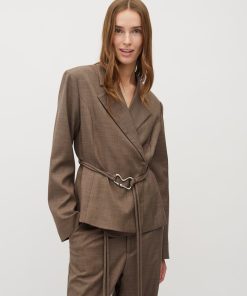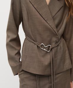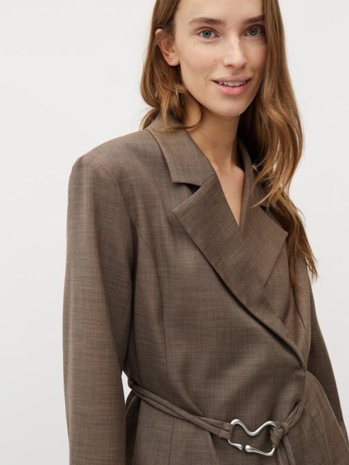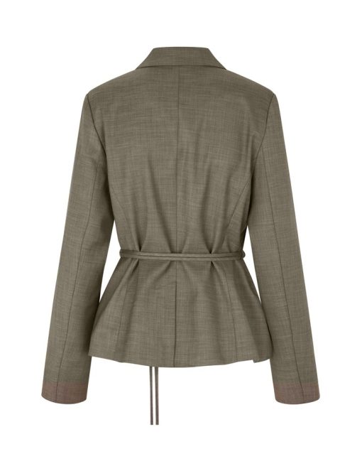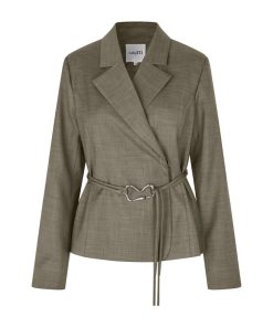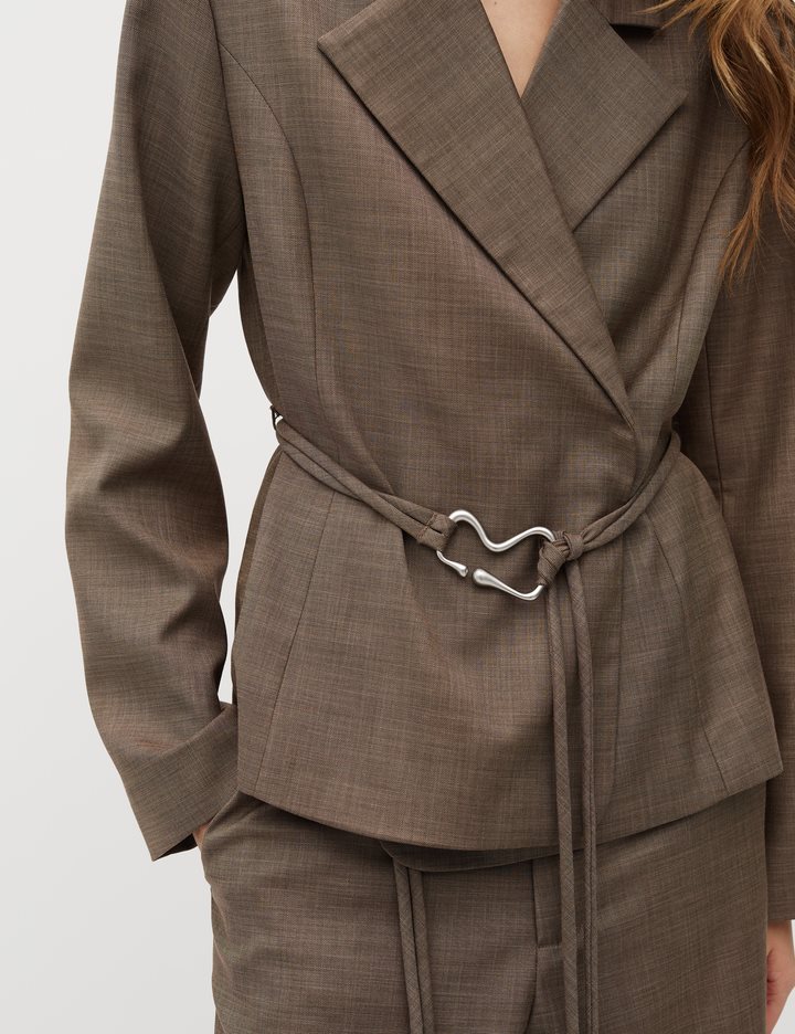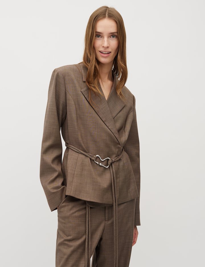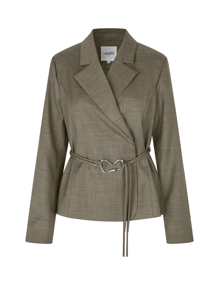 Feminin blazer med bælte.- Materiale: 83% Polyester, 15% Viskose, 2% Elastan- Slå-om lukning- Bælte med dekorativ spænde- Blød kvalitet- Normal længdeModellens højde er 176 cm og hun er iført str.S.