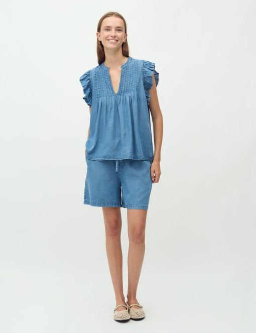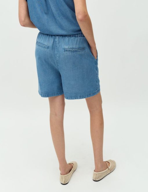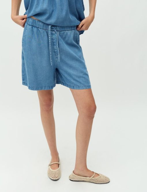 Loose denim shorts.- Material: 67% Lyocell (TENCEL™), 33% LENZING™ ECOVERO™ Viscose- Adjustable waist with drawstring- Loose fit- Side pockets- Soft materialThe model is 176 cm tall and is wearing a size S.
