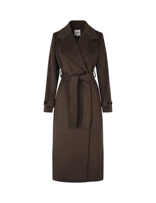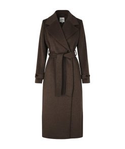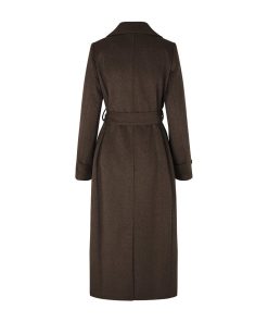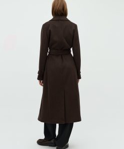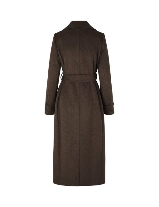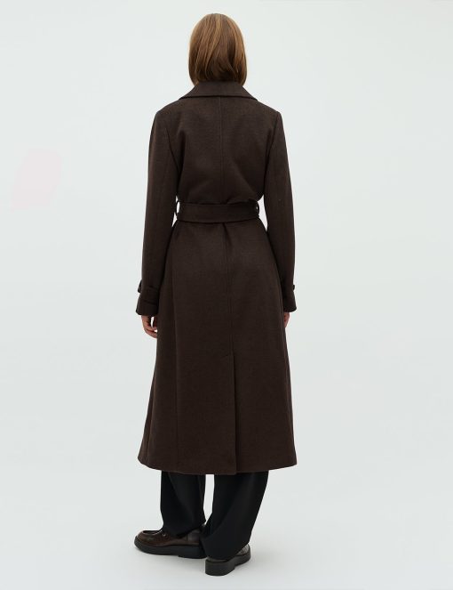Long coat with tie waist.- Materials: Shell; 50% Wool, 45% Polyester, 5% other fibers. Lining; 100% Polyester- Maxi length- Side pockets- Button closureThe height of the model is 176 cm and she is wearing a size S.