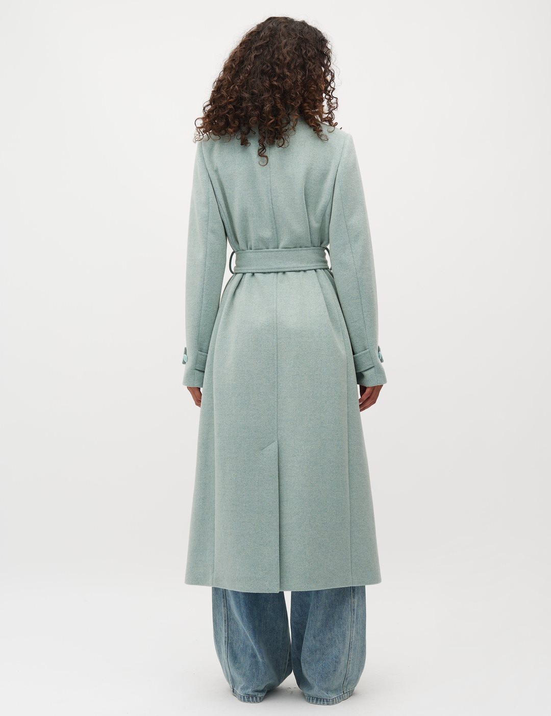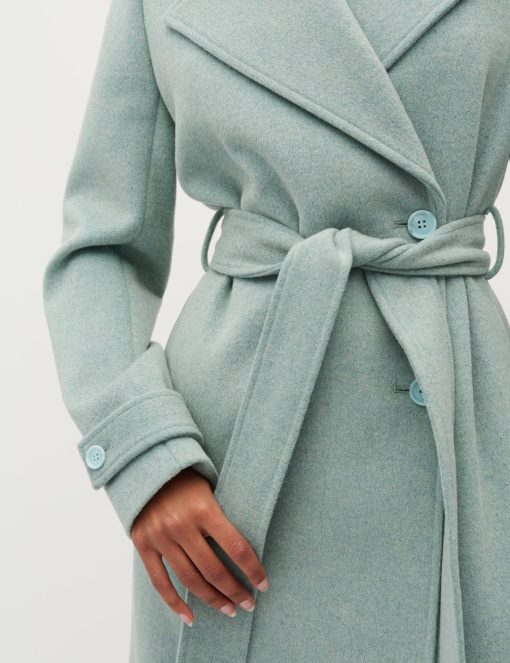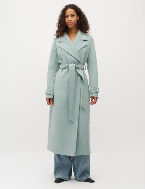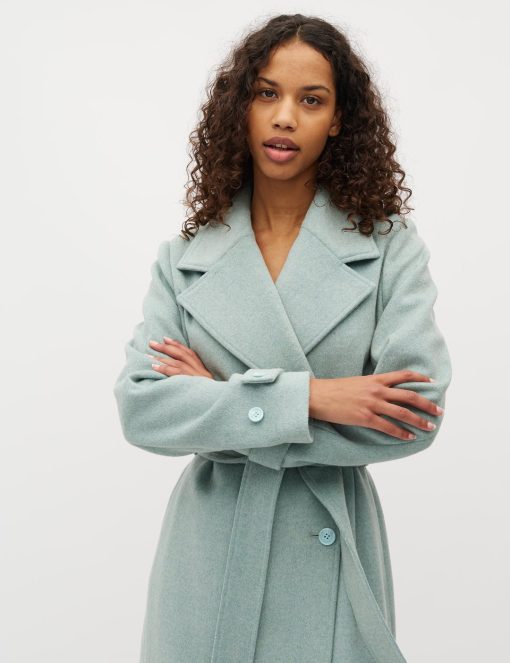 Long coat with tie waist.- Materials: Shell; 50% Wool, 45% Polyester, 5% other fibers. Lining; 100% Polyester- Maxi length- Side pockets- Button closureThe height of the model is 176 cm and she is wearing a size S.