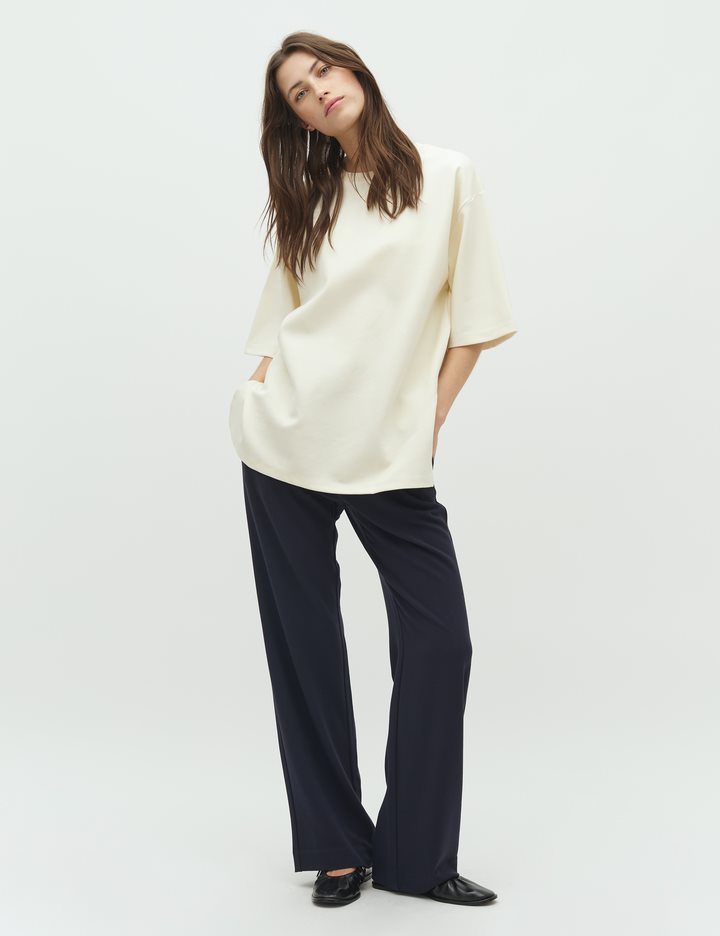 Pant with wide legs.- Materials: 63% Polyester, 33% Viskose, 4% Elastan- Wide legs- Classic fit- Elastic waist- Colour: Night Sky