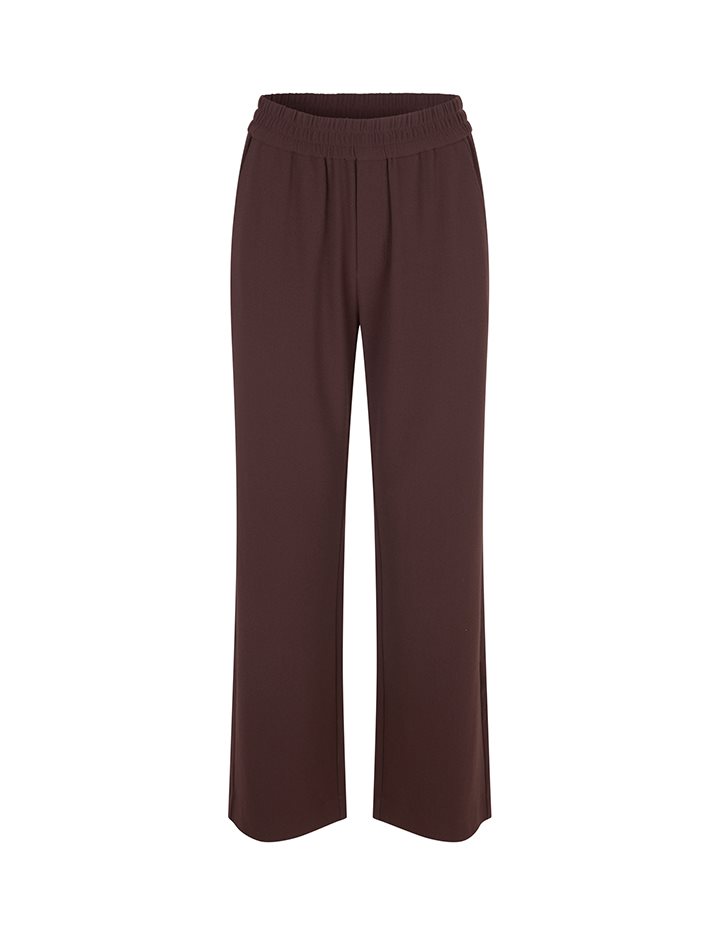Trousers with wide legs from mbyM.- Material: 63% Polyester, 33% Viscose, 4% Elastane- Wide legs- Elastic at the waist- Side pockets- Color: CoffeeThe height of the model is 176 cm and she is wearing a size s.