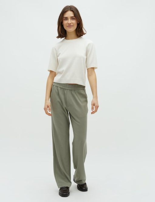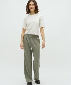 Trousers with wide legs.- Materials: 63% Polyester, 33% Viskose, 4% Elastan- Wide legs- Classic fit- Elasticated waist- Side pocketsThe height of the model is 176 cm and she is wearing a size S.
