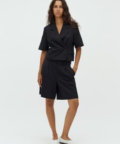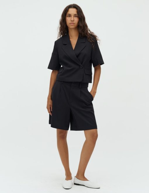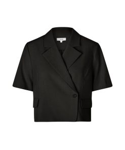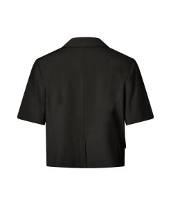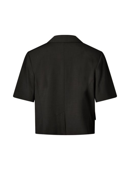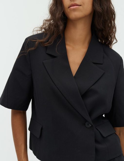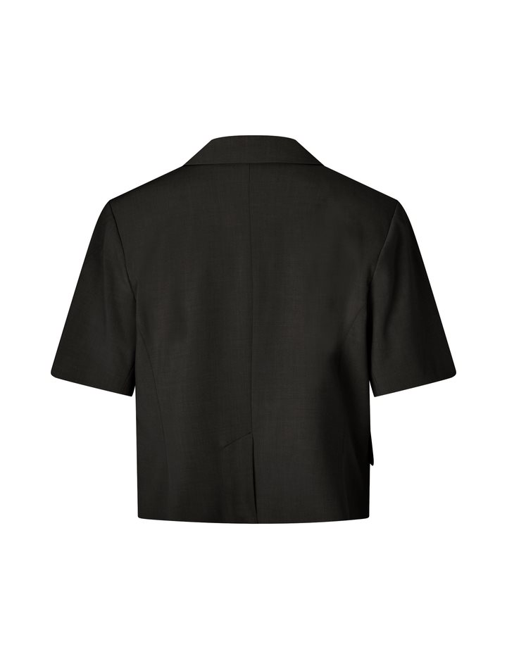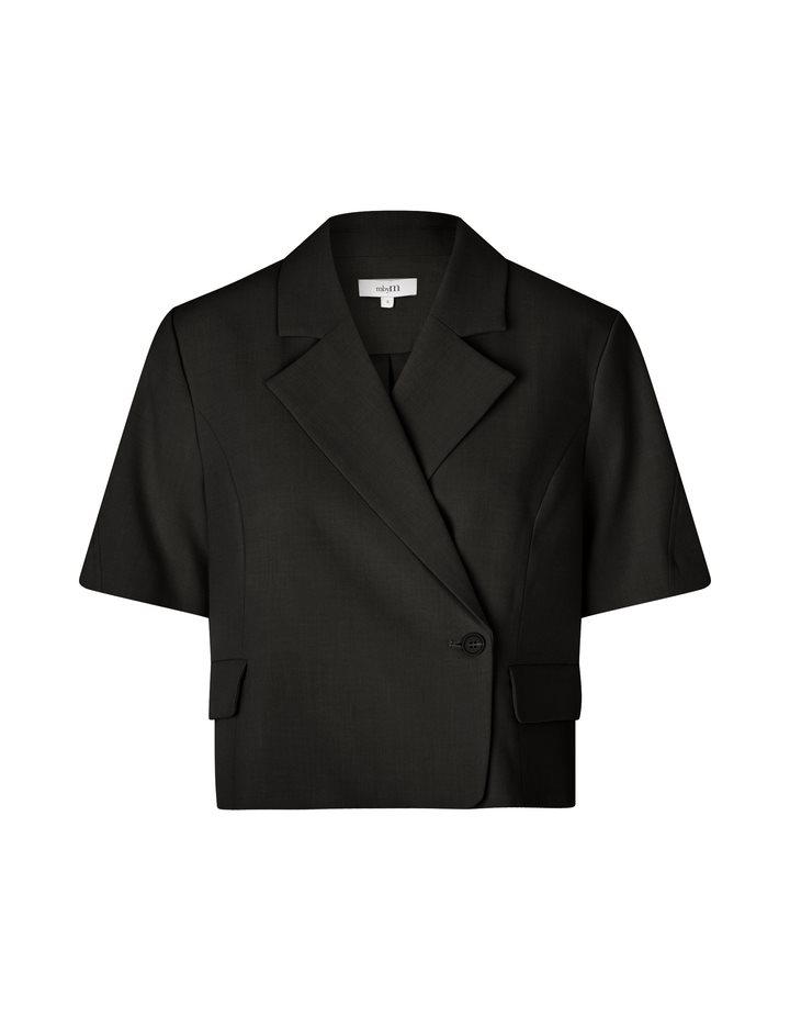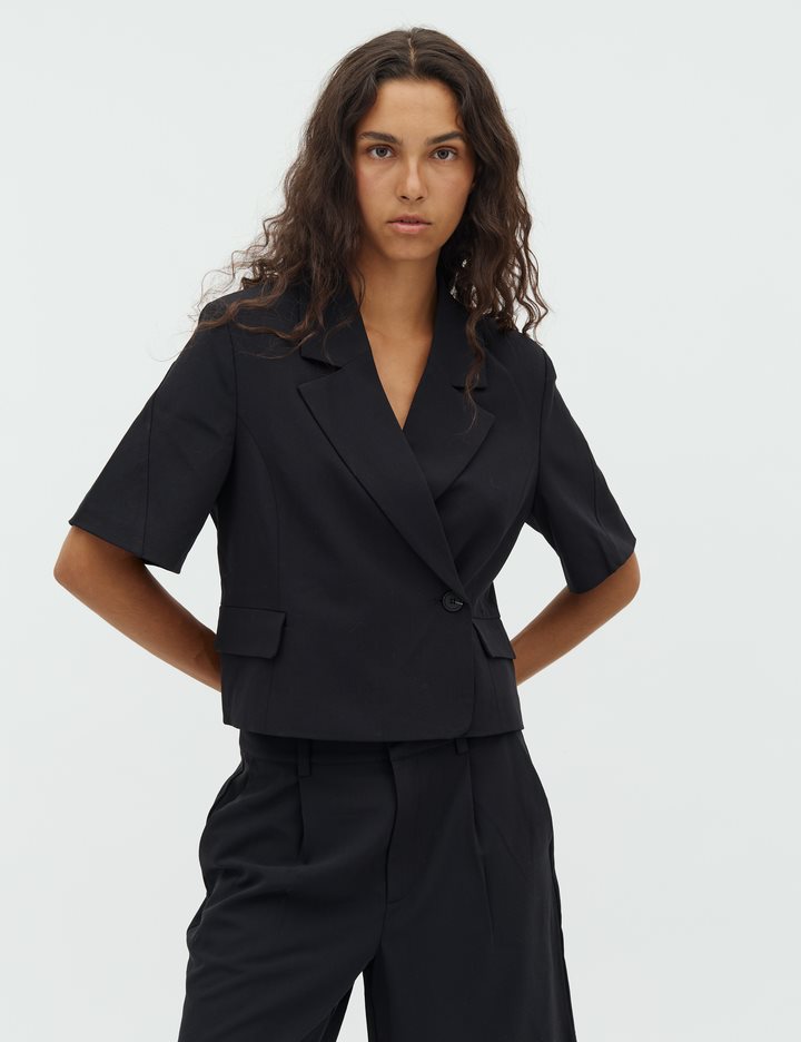 Short-sleeved blazer with side closure- Material: 63% Polyester, 33% Viscose, 4% Elastane- Short sleeves- Side button closure- Loose fit- Front pocketsThe model is 176 cm tall and is wearing a size S.