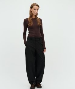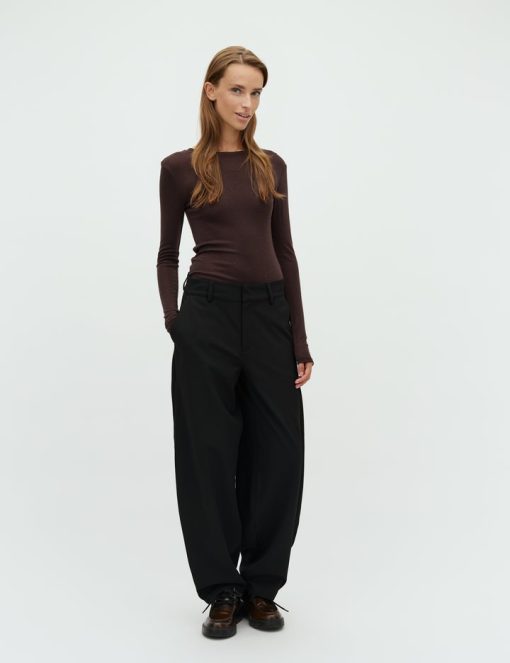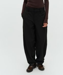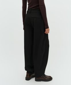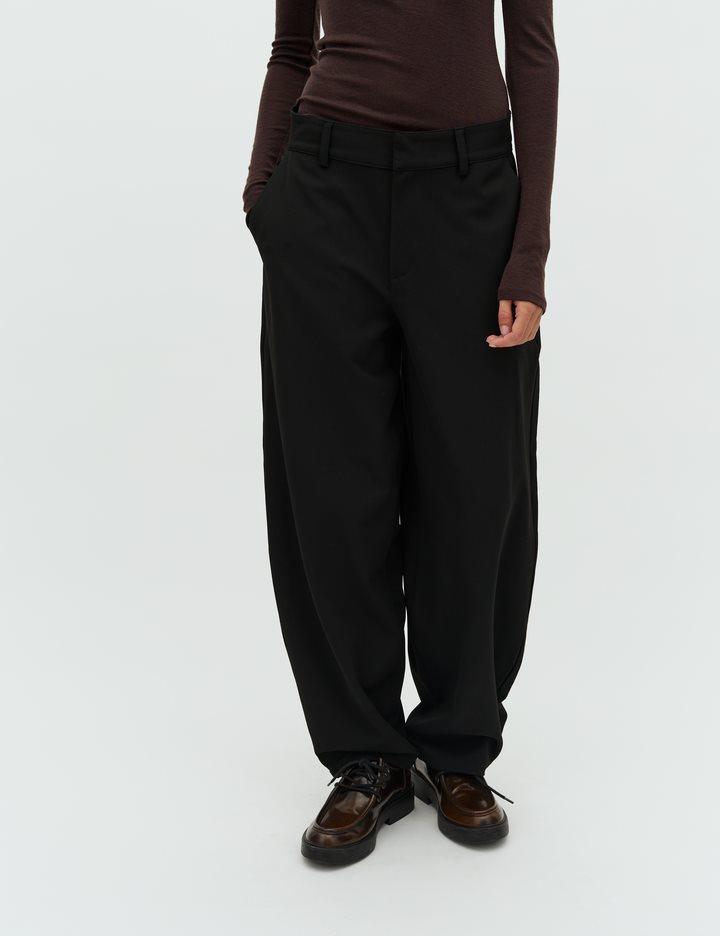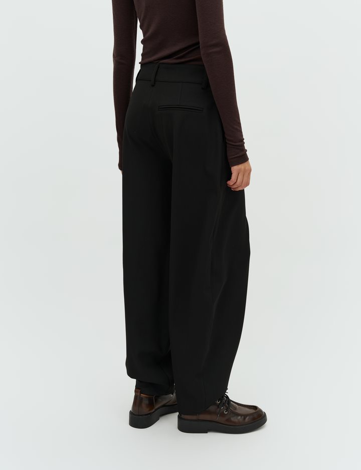 Suit trousers with barrel fit.- Material: 62% Recycled polyester, 33% viscose, 5% elastane- Barrel fit- Mid-waist- Belt loops- Side pockets- Concealed zipper- 1 back welt pocketThe model is 176 cm tall and is wearing size S.
