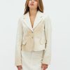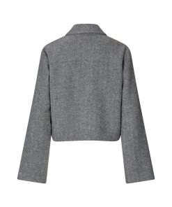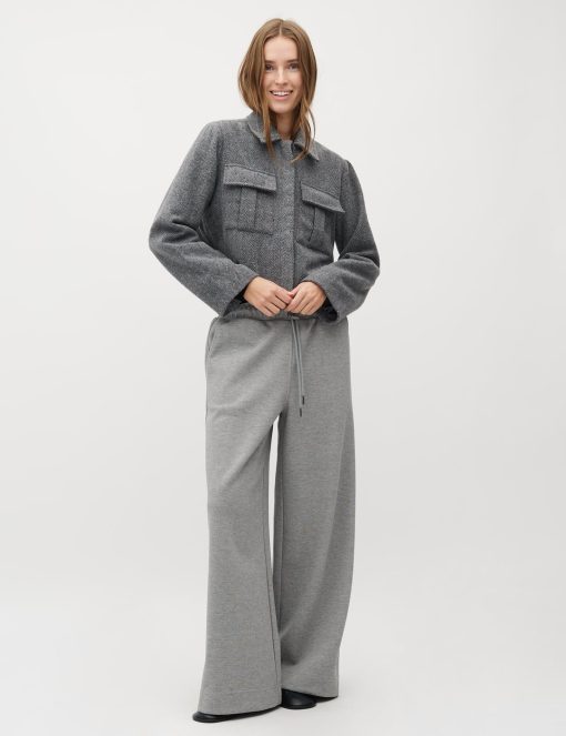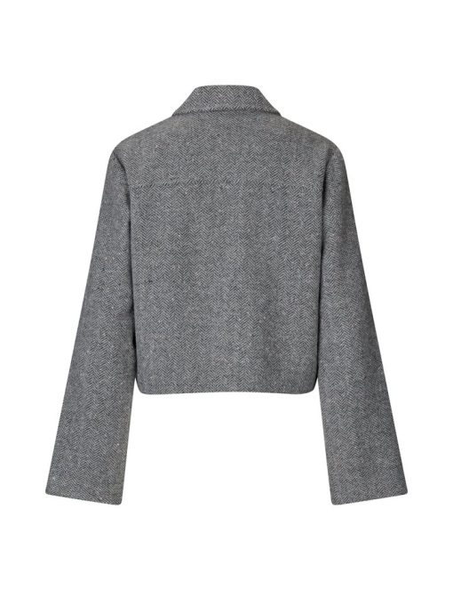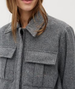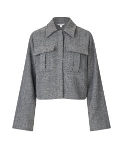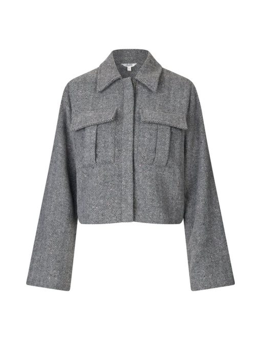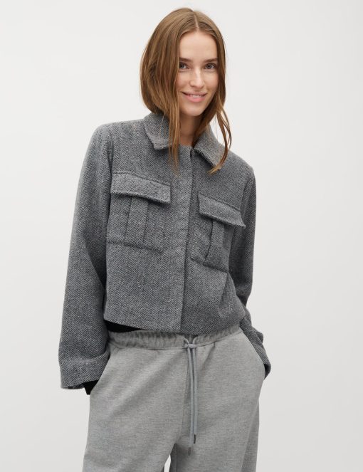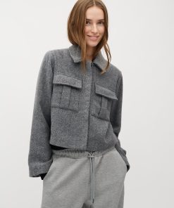 Short jacket with visible pockets.- Material: Shell: 95% Polyester, 5% Wool. Waistband: 100% Polyester- Chest pockets- Short length- Shirt collar- Button closure- Loose fitThe model's height is 176 cm and she is wearing a size S.