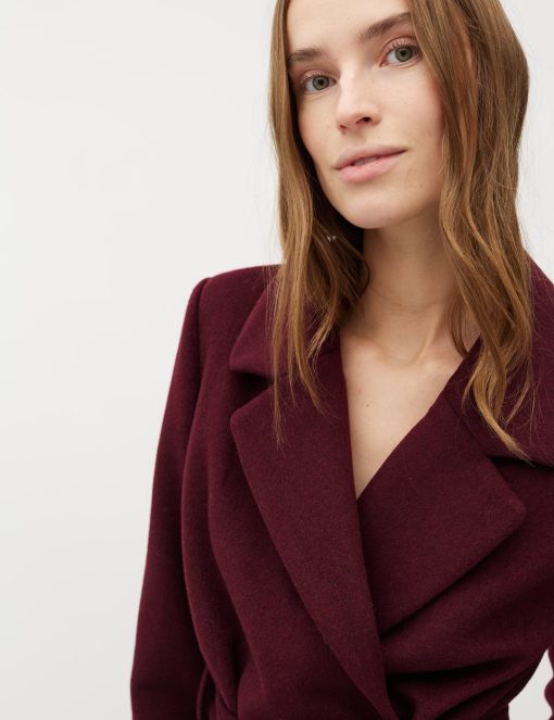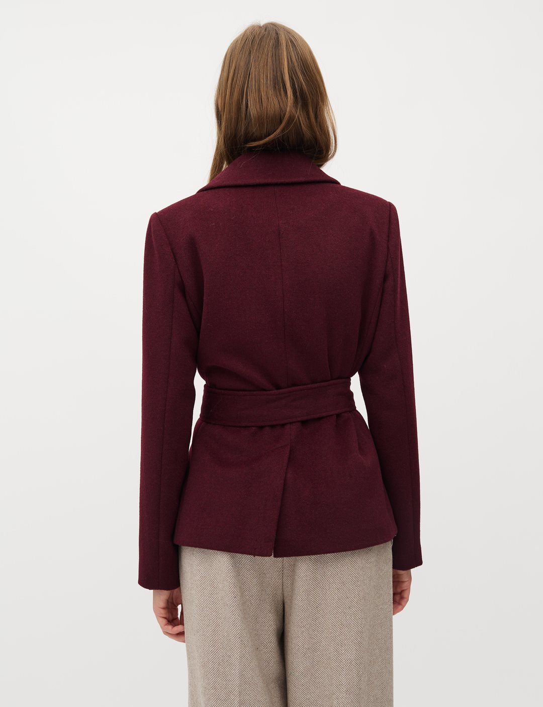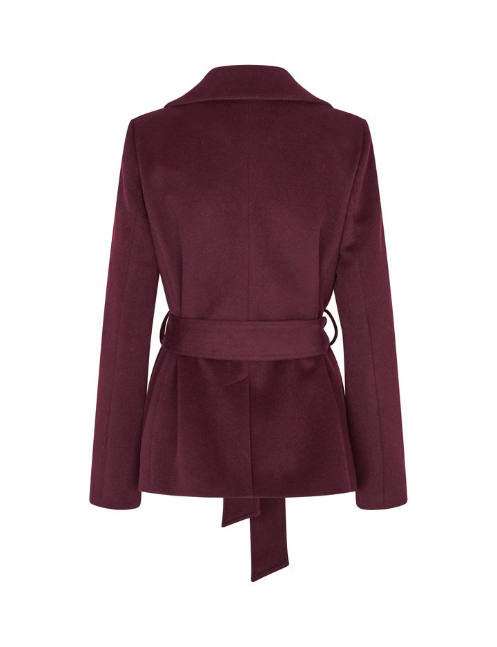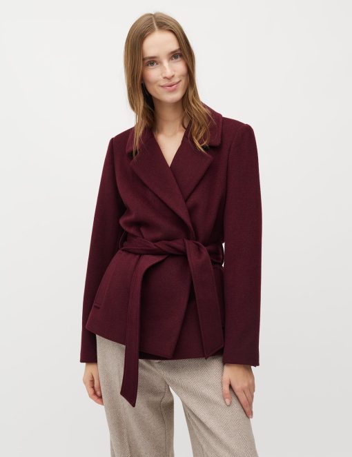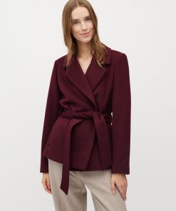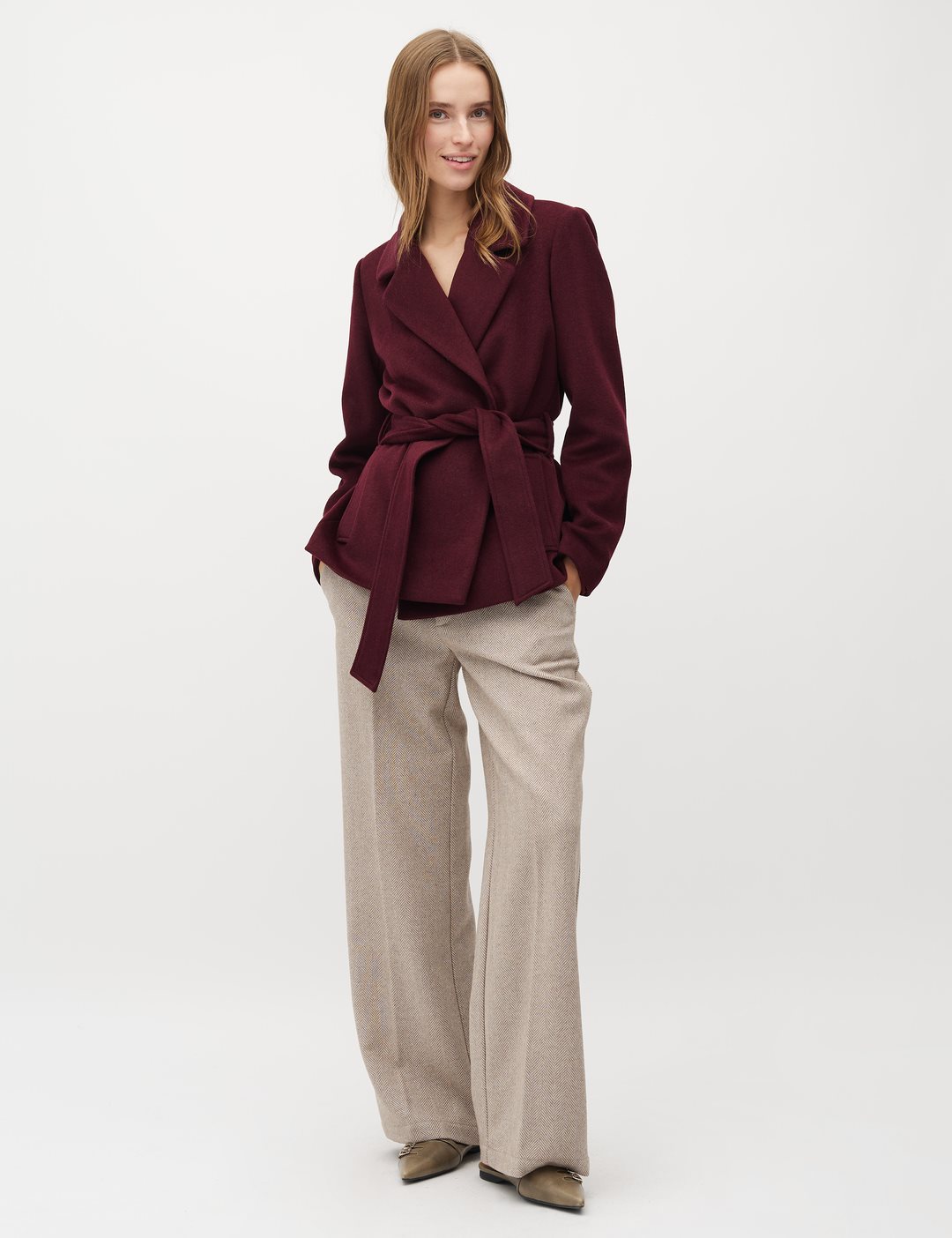 Coat in a warm wool blend.- Material: Shell: 50% Wool, 45% Polyester, 5% Other fibers. Waistband: 100% Polyester- Reverse collar- Tie waist- Side pockets- Snap button closure- Short lengthThe model is 176 cm tall and is wearing a size S.