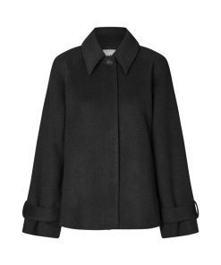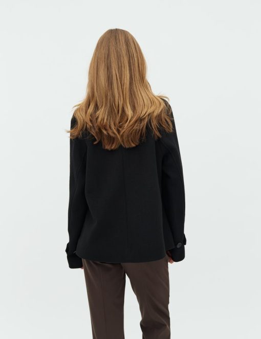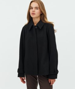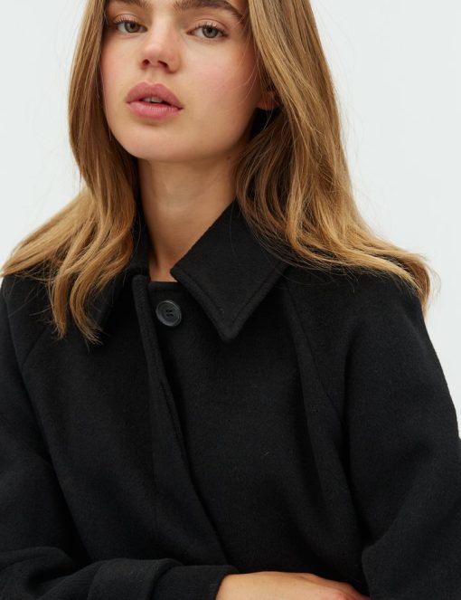 Short wool jacket.- Material: 50% Wool, 45% Polyester, 5% Other fibers- Concealed button closure- Classic collar- A-line- Loose fit- Side pocketsThe model's height is 176 cm and she is wearing a size S/M.