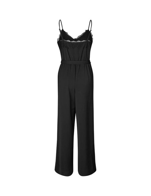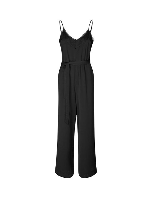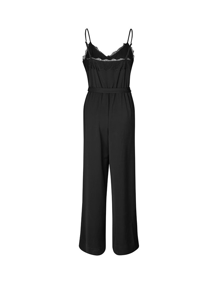 Woven jumpsuit with thin straps.- Material: 65% Recycled Polyester, 35% Polyester- Thin adjustable straps- Detachable tie belt- V-neck with lace trim- Wide legs- Side pockets- Normal fitThe height of the model is 175 and she is wearing a size S.