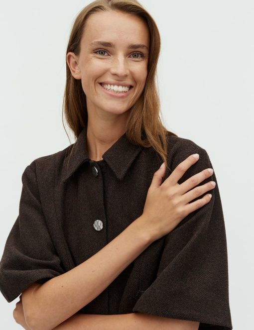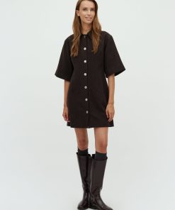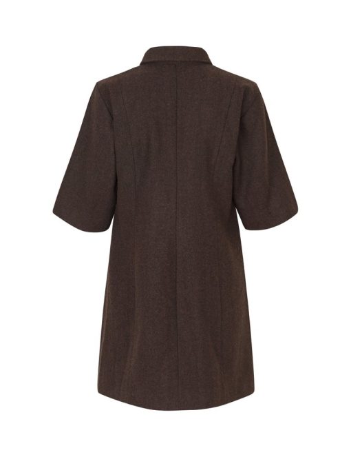 Dress in a wool quality.- Material: Shell: 70% Polyester, 30% Wool. Shell: 80% Polyester, 20% Cotton- Mini length- Loose fit- Short loose sleeves- Closes with silver buttons- Heavy qualityThe model's height is 176 cm and she is wearing size S.