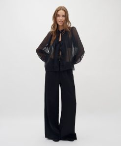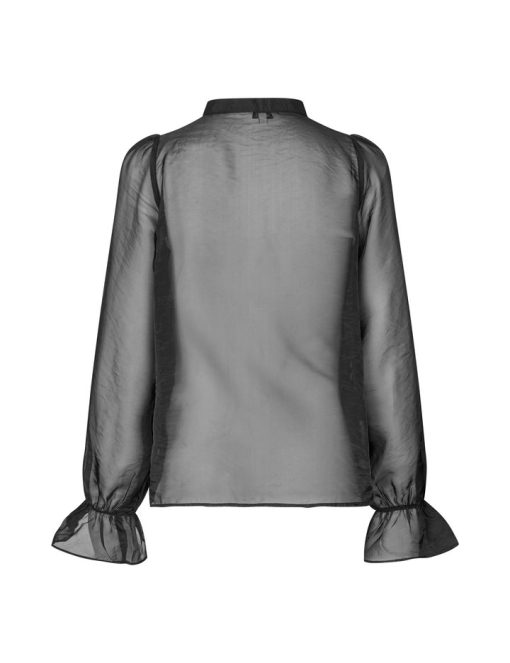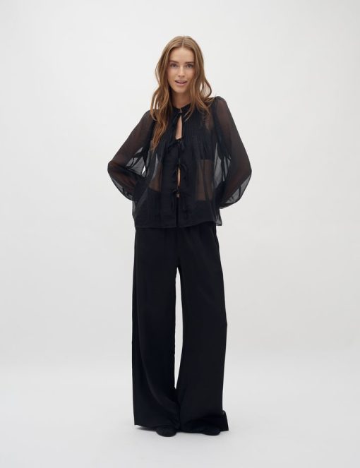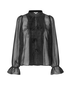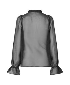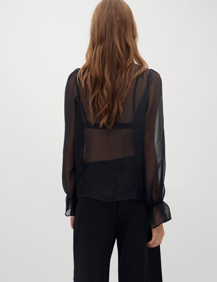 Long-sleeved blouse in organza.- Material: 100% Polyester- Ribbon closure- Round neck- Details on the chest- Ruffle detail at wrists- Relaxed fit- Transparent
