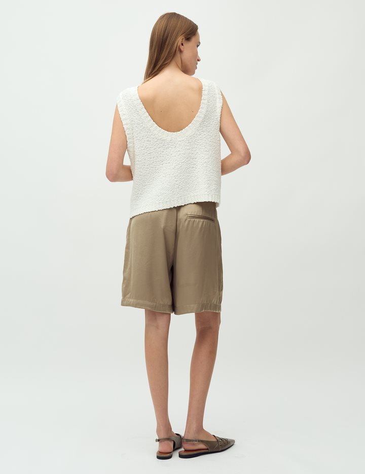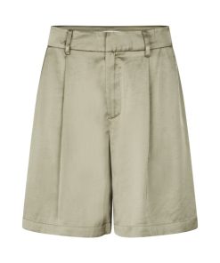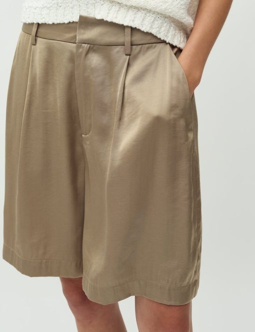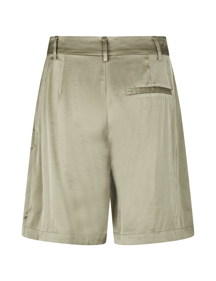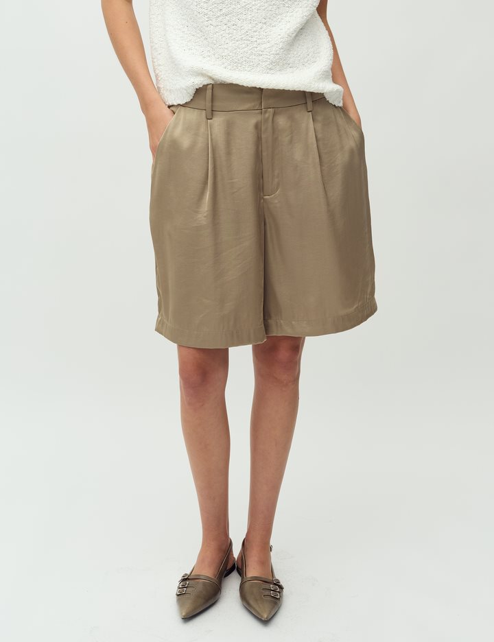 Suit shorts with wide legs.- Material: 54% Polyester, 46% Viscose- Wide legs- Light a-shape- Belt straps- Hook and zip closure- Side pockets- Piped back pocketThe model's height is 176 cm and she is wearing a size S.