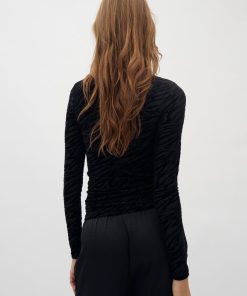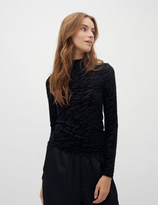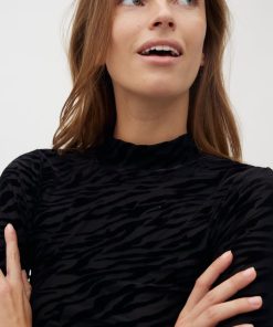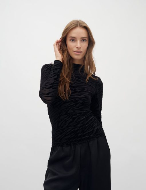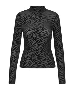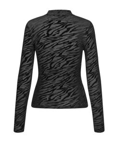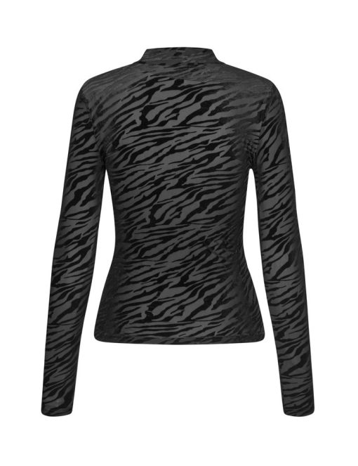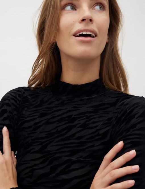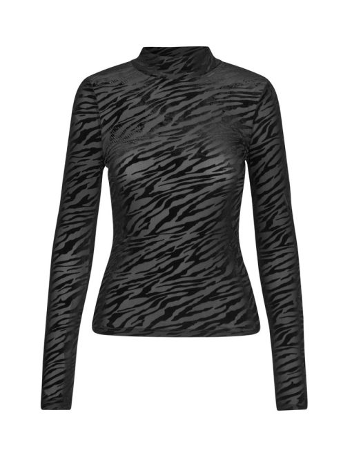 Velvet-mesh top in zebra print- Material: 70% Elastane, 20% Polyamide, 10% Elastane- Transparent- High neck- Velvet zebra print- Tight fitting- Color: Black