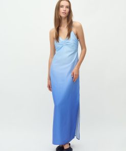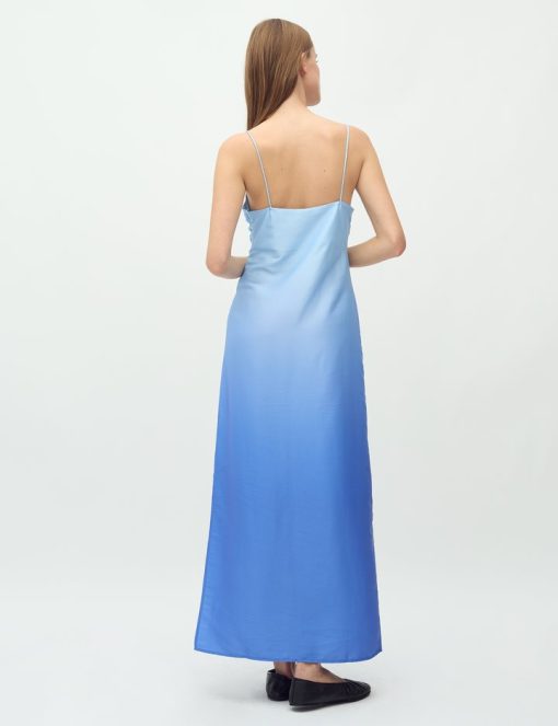 Maxi dress with thin straps.- Material: 52% Polyester, 48% Viscose- Maxi length- Side slit- Thin adjustable straps- V-neck- Side zipperThe model's height is 176 cm and she is wearing a size S.