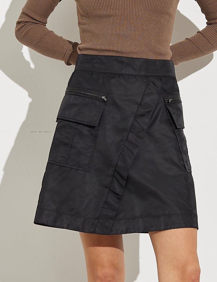 Skirt with big side pockets.- Material: 100% Nylon- Mini length- A-shape- Workwear inspired- Wrap effectThe height of the model is 178 cm and she is wearing a size S.